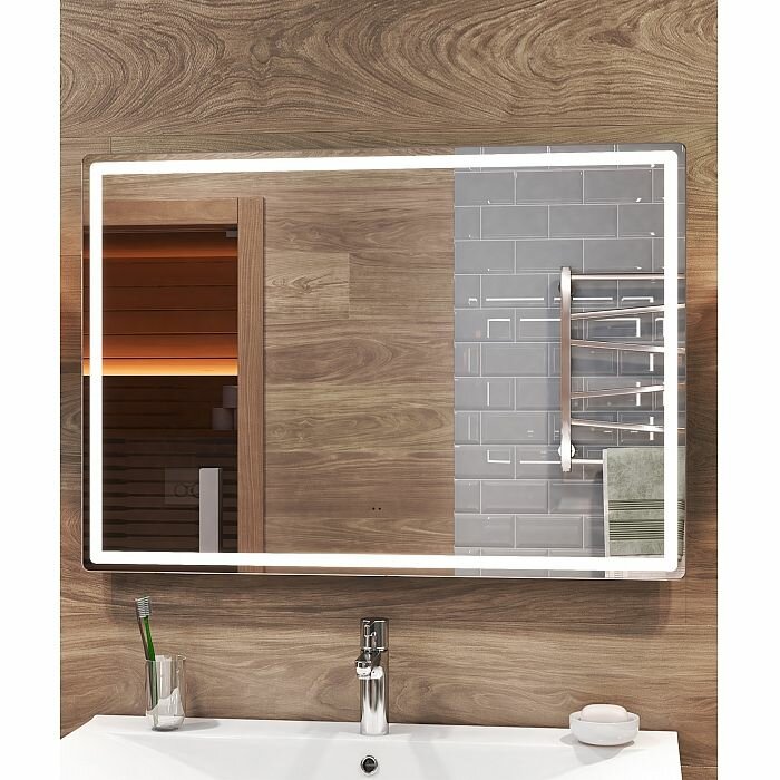 Зеркало настенное для ванной КерамаМане 70*100 см с холодной подсветкой 6000 К с сенсорной кнопкой