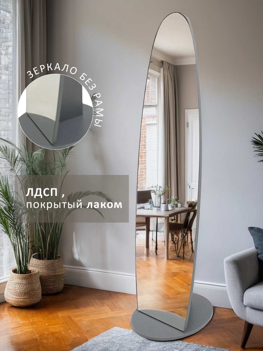 Зеркало напольное интерьерное в полный рост криволинейное с напольной подставкой "Stone" 170смх70см