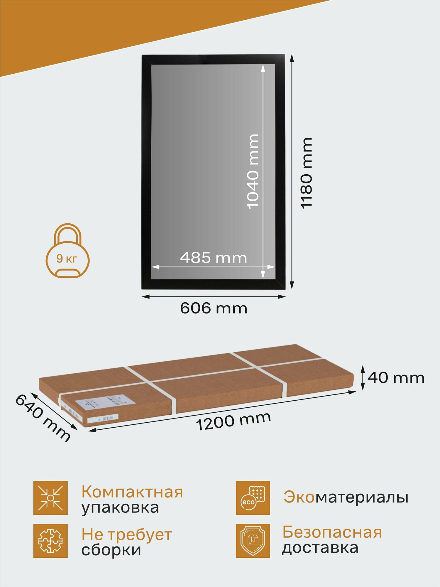 Зеркало настенное Мебелик BeautyStyle 11 черный Размеры: Высота 1180мм Глубина 16мм Ширина 606мм