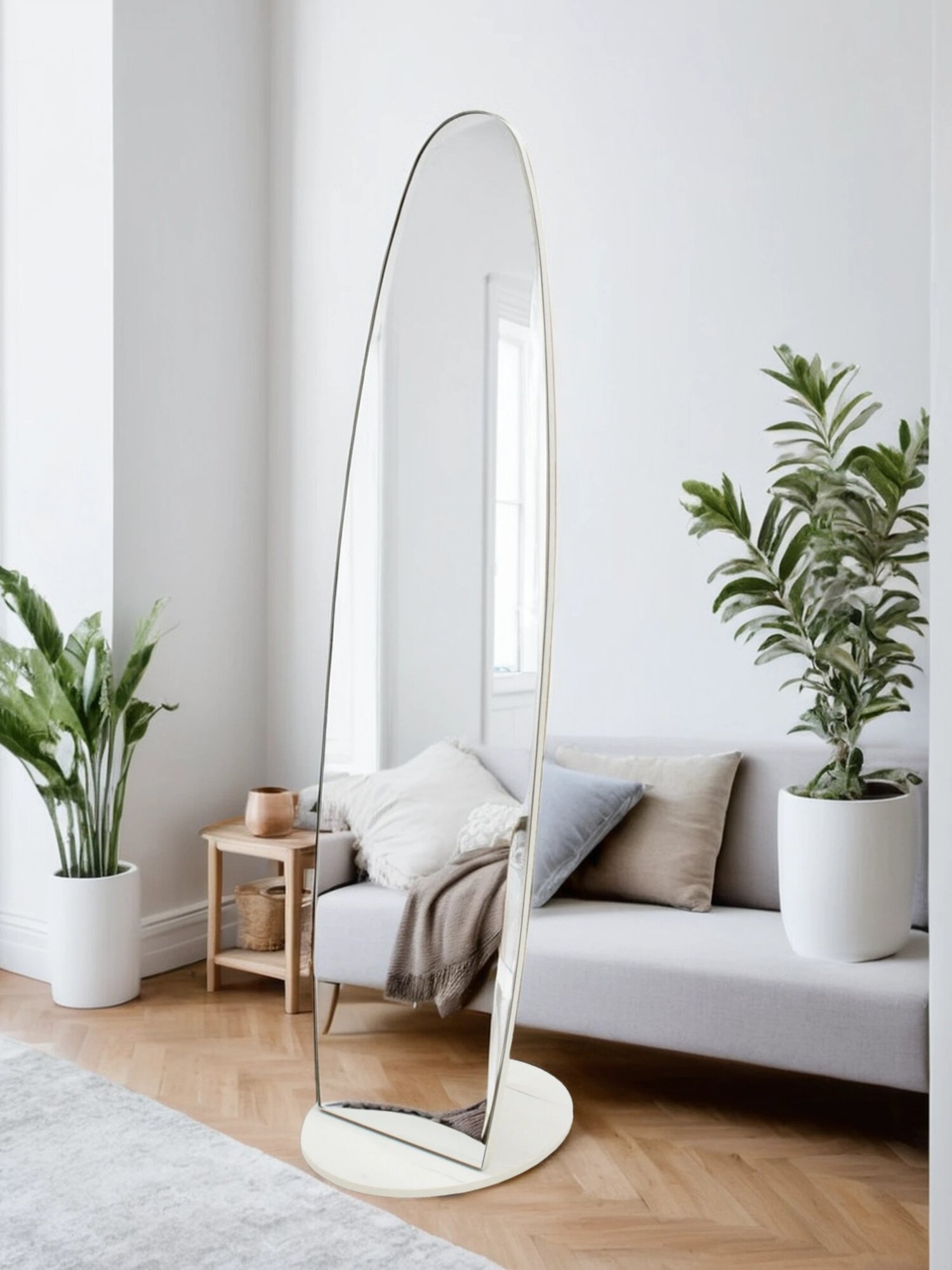 Зеркало напольное интерьерное в полный рост криволинейное с напольной подставкой "Stone" 170смх70см