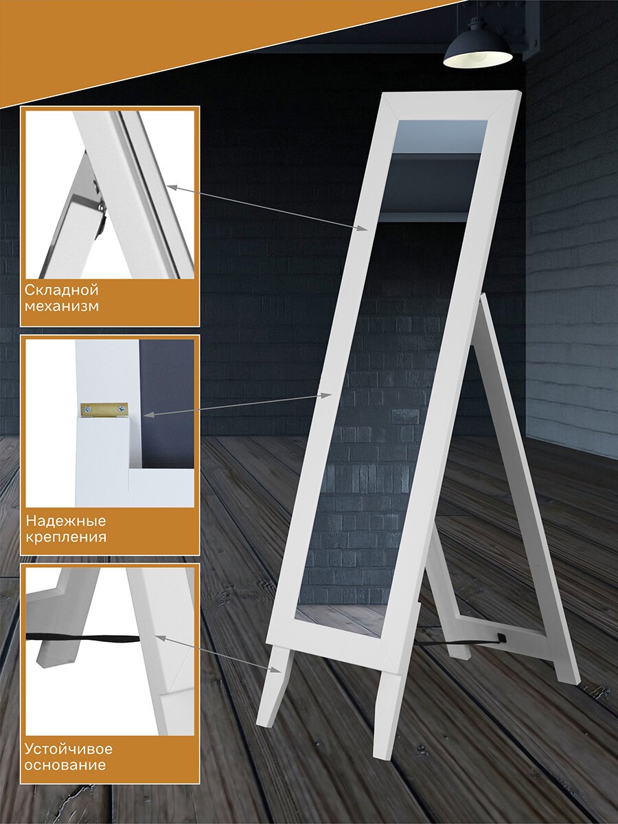 Зеркало напольное в полный рост Стелла 1 белый 157,8 см х 40,4 см