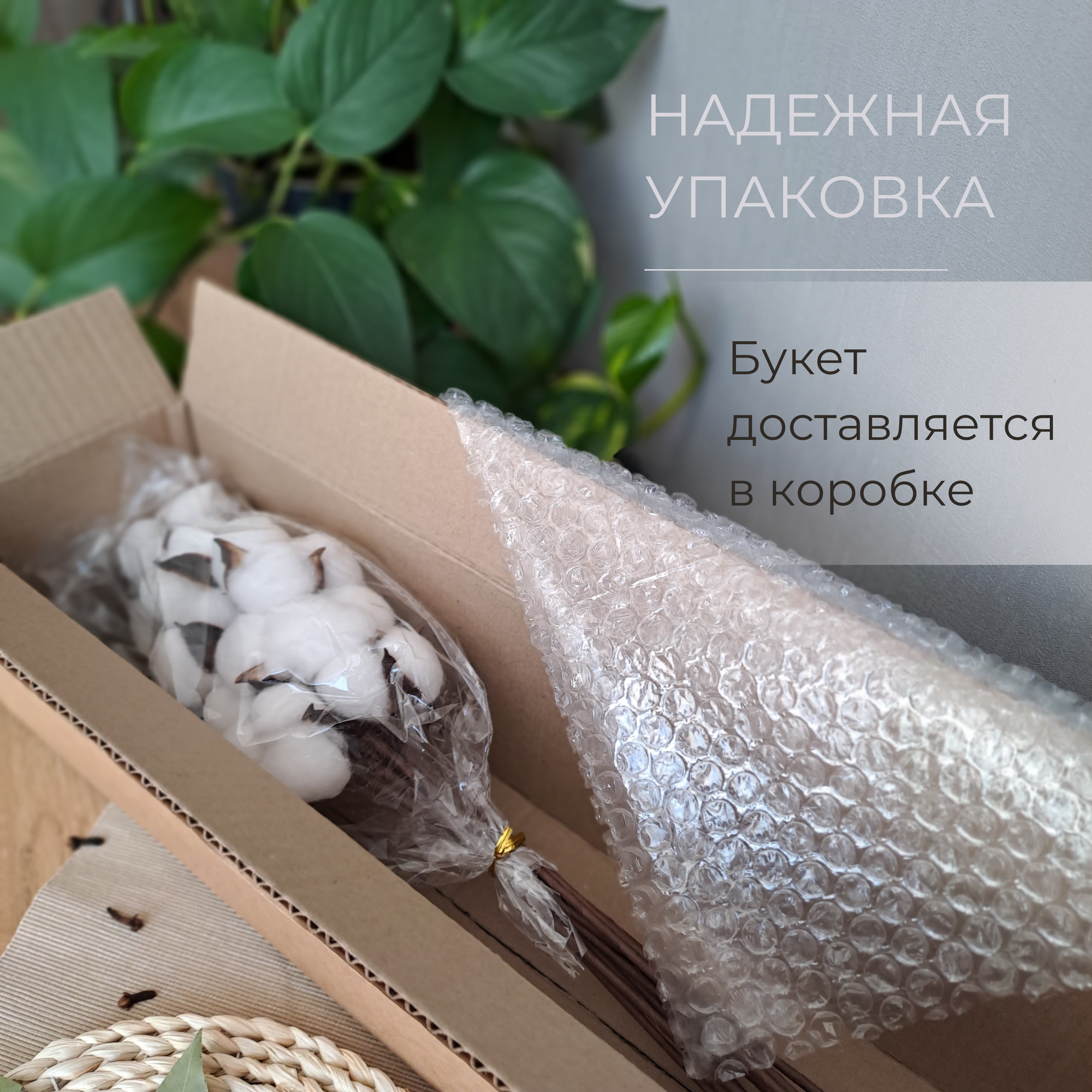 Хлопок сухоцвет для декора 10 шт, 30-35 см, декоративный букет из сухоцветов, белый интересное: