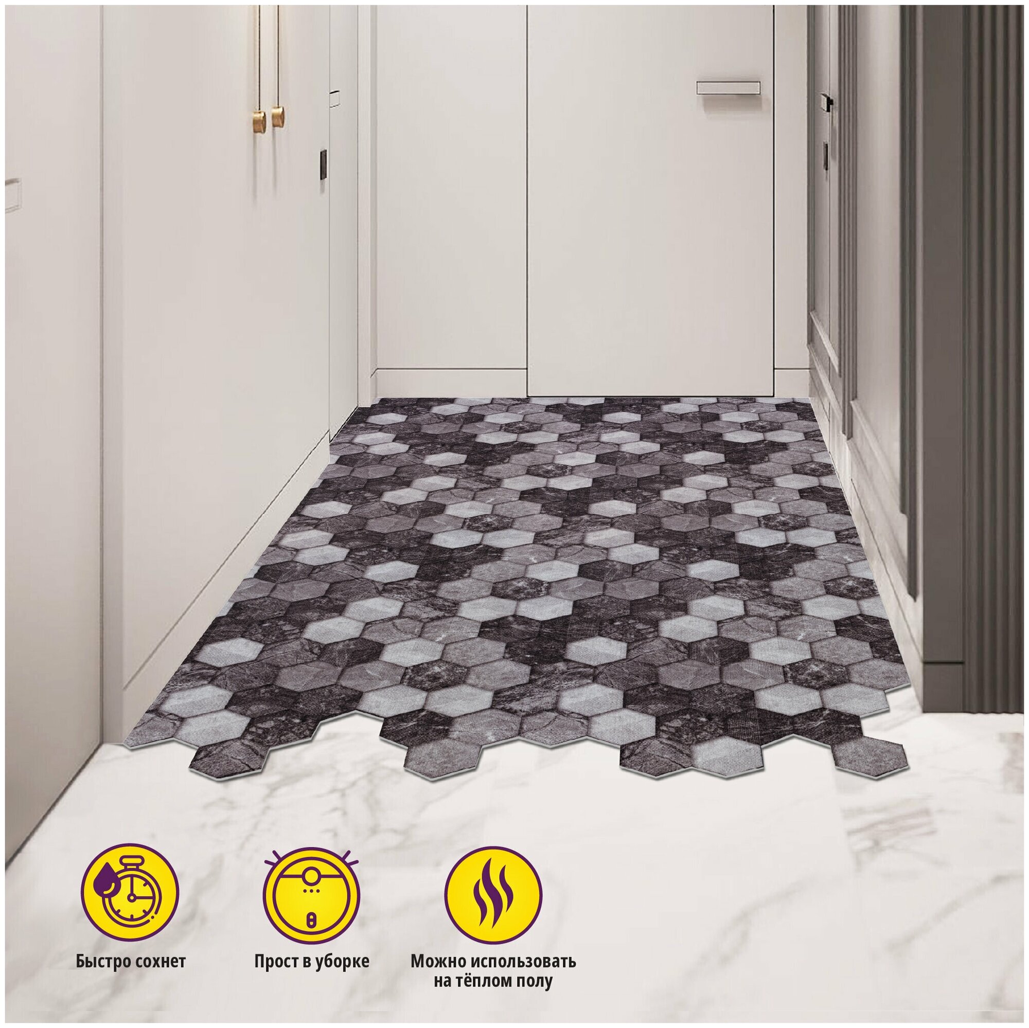 СохранитьКоврик вырезной Icarpet PRINT антискользящий влаговпитывающий 120х200 Соты Мрамор чёрно-серый интересное:
