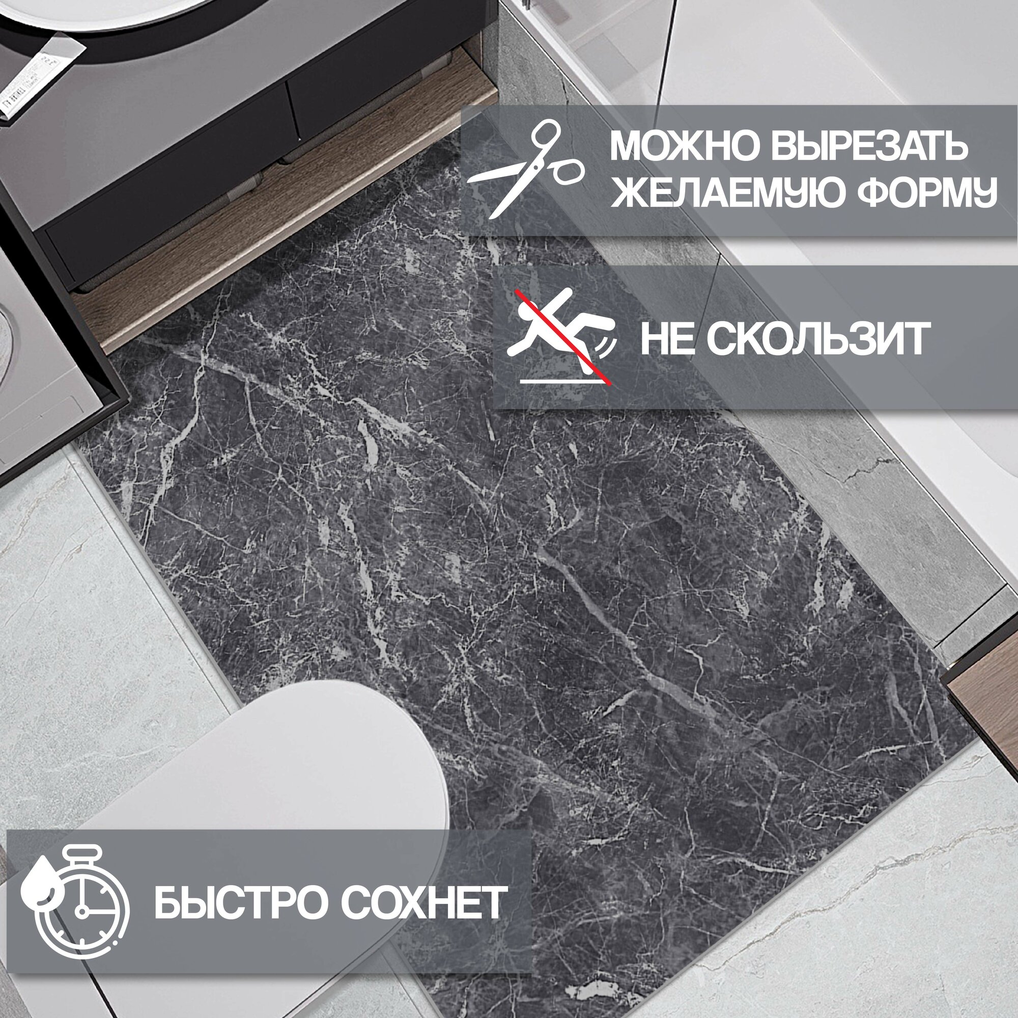 СохранитьКоврик вырезной Icarpet PRINT антискользящий влаговпитывающий 80x120 Мрамор серый интересное: