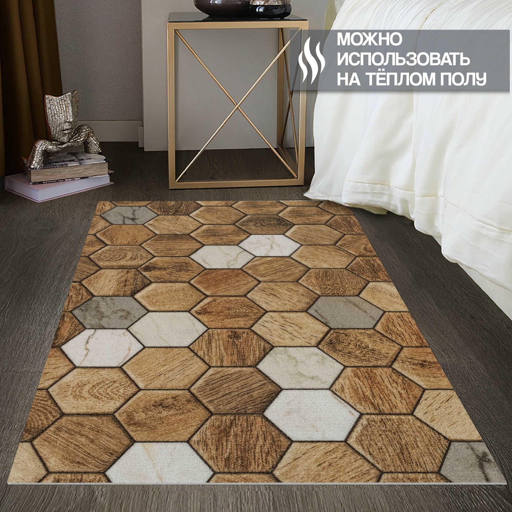 Коврик придверный вырезной PRINT / размер 100х150 см/Соты Дерево с мрамором 110, коврик прикроватный, для кухни, для ванной