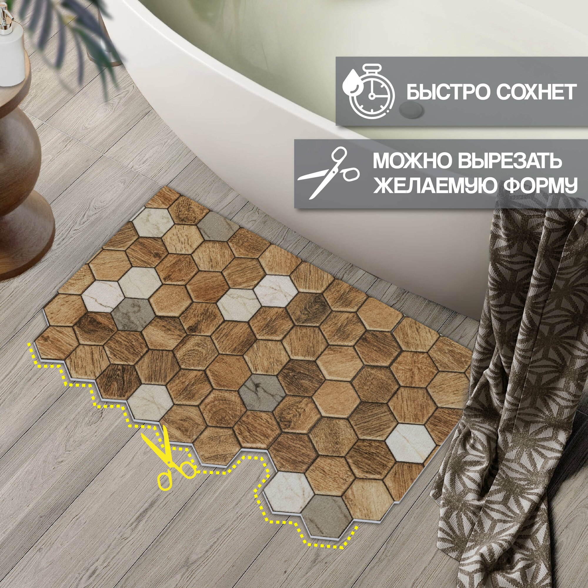 Купить Коврик вырезной Icarpet PRINT антискользящий влаговпитывающий 60х100 Соты Дерево с мрамором 110