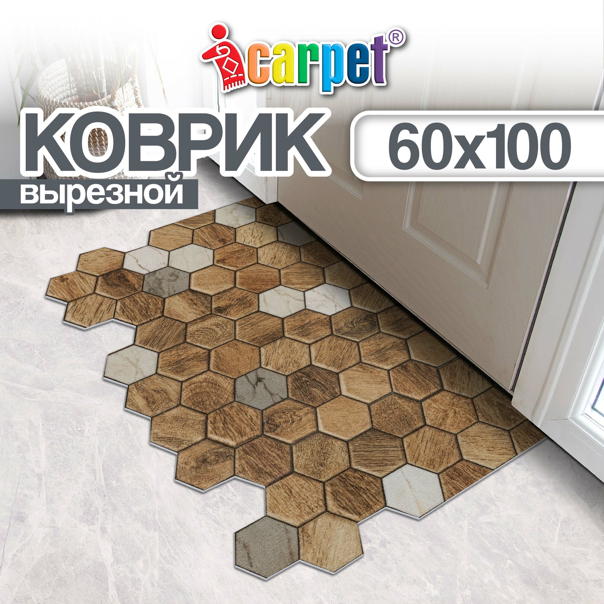 Коврик вырезной придверны Icarpet PRINT антискользящий влаговпитывающий/ 60х100 см/Соты 3D Микс 125, коврик для кухни, для ванной