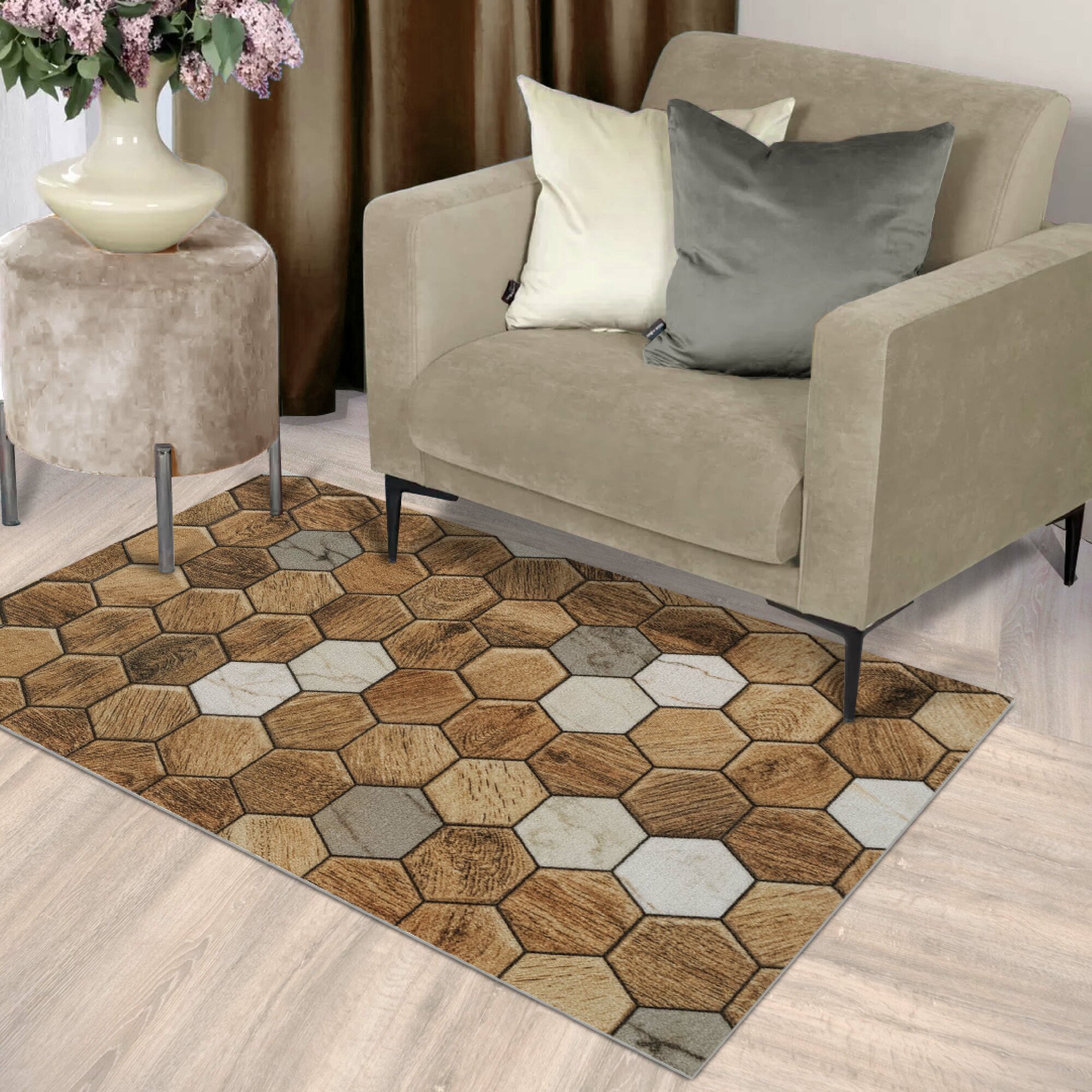 Коврик придверный вырезной PRINT 100х150 Соты Дерево с мрамором 110, коврик прикроватный