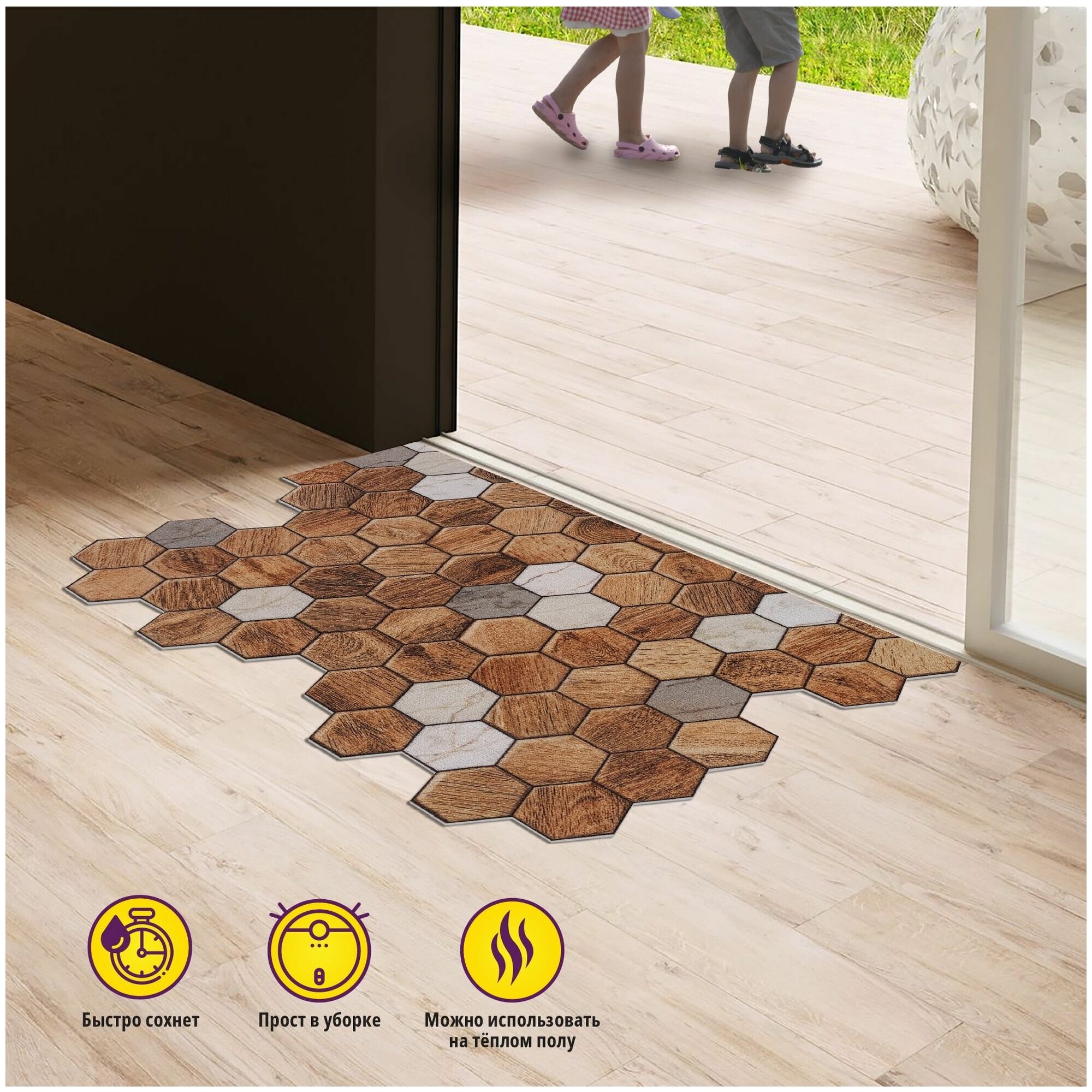 Вырезной придверный коврик. Коврик в прихожую антискользящий влаговпитывающий PRINT 150х200 Соты Дерево с мрамором 110