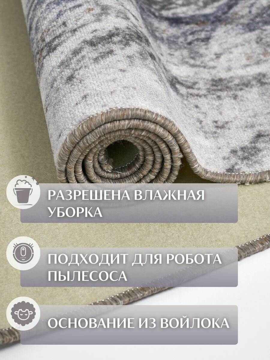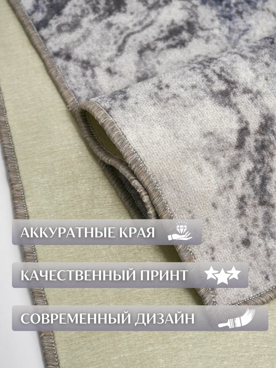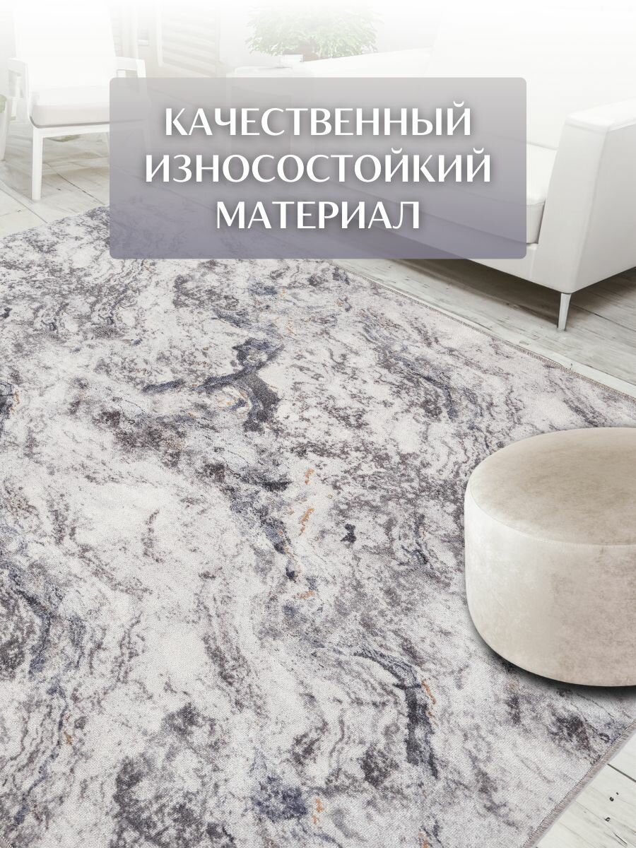 Безворсовый , противоскользящий коврик CarpetWorld "Мрамор" , полипропилен , микрофибра , прямоугольный , 100x60см.