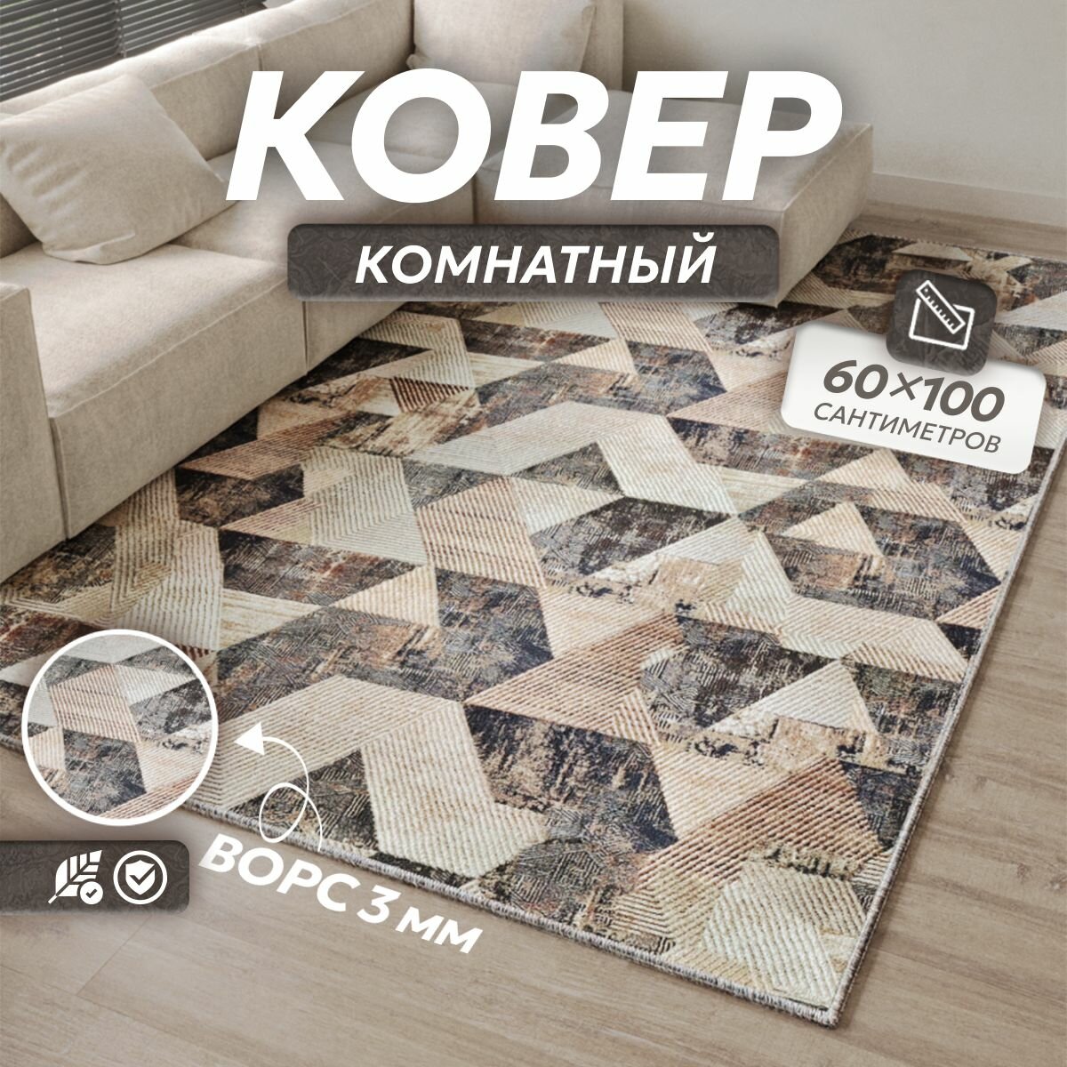 Ковер на пол, коврик прикроватный, придверный, 0.6x1 м
