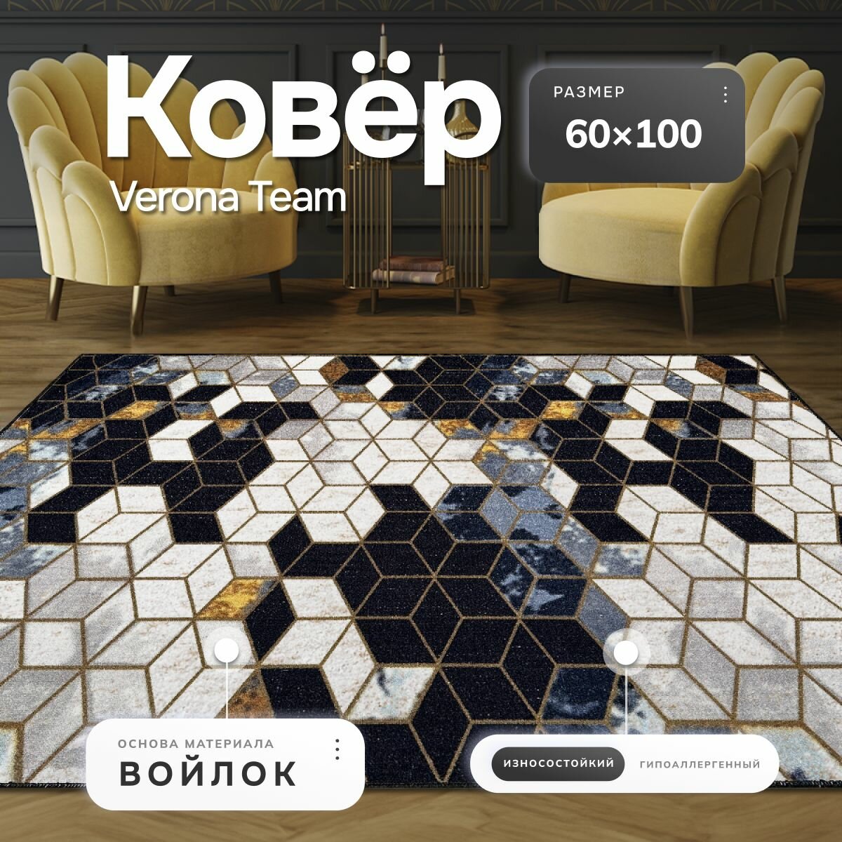 Ковер на пол, Verona Тeam, 60x100 см