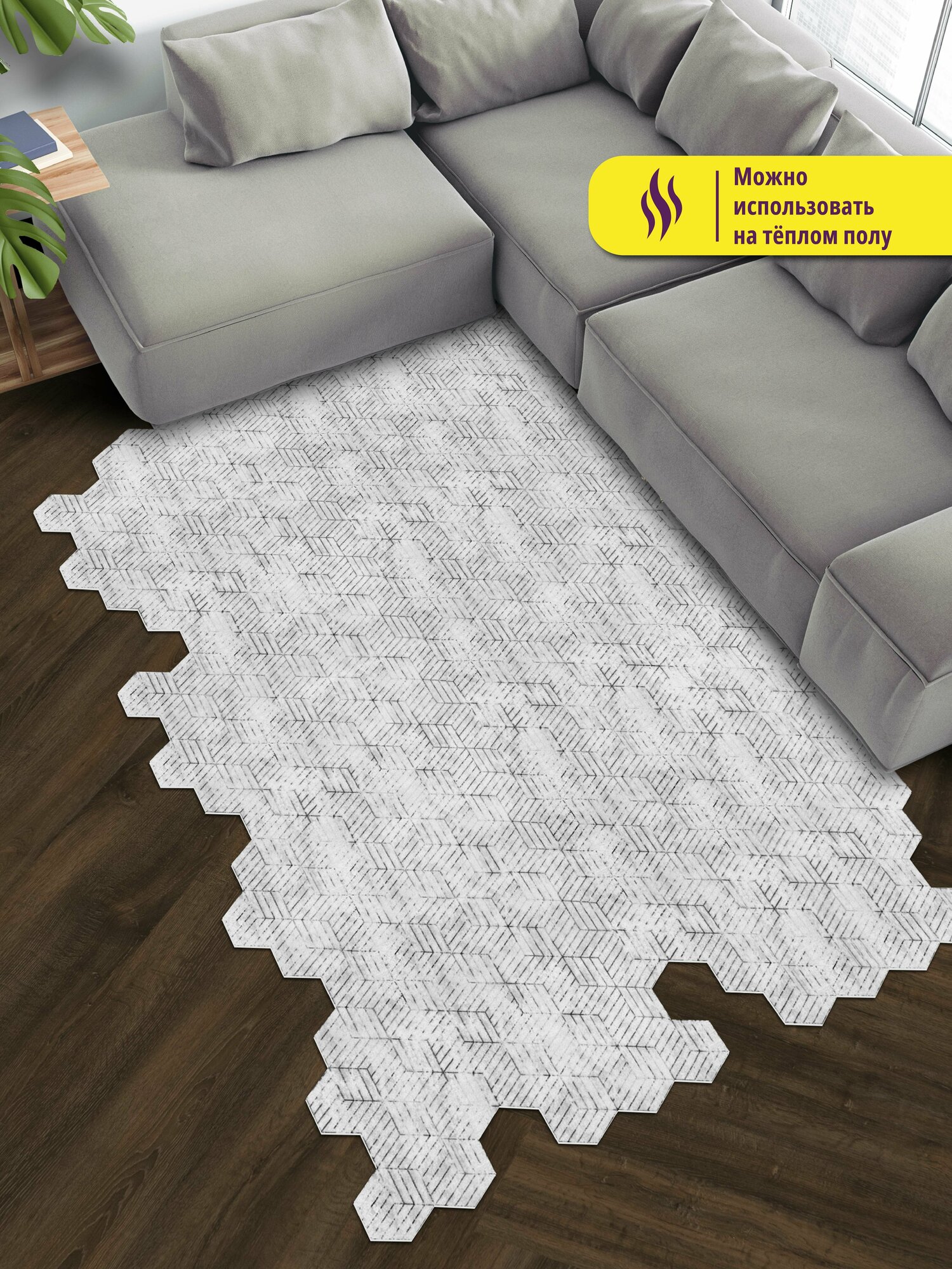Коврик придверный вырезной Icarpet PRINT /100х150 см/соты Омега светло-серый, коврик прикроватный, для кухни, для ванной