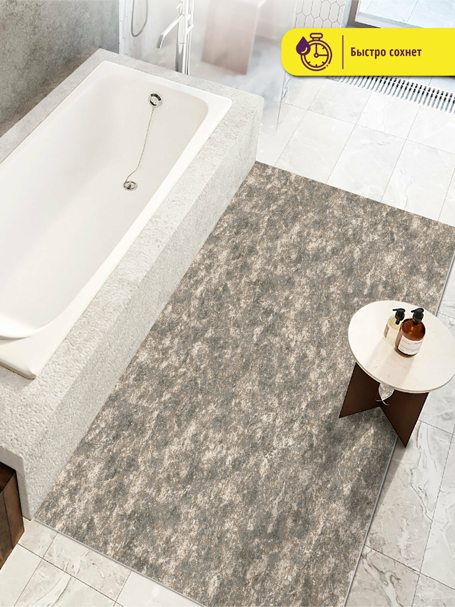 Коврик вырезной прикроватный, придверный Icarpet PRINT антискользящий влаговпитывающий/ 60х100 см/ Мрамор серо-бежевый 135, коврик для кухни, для ванной