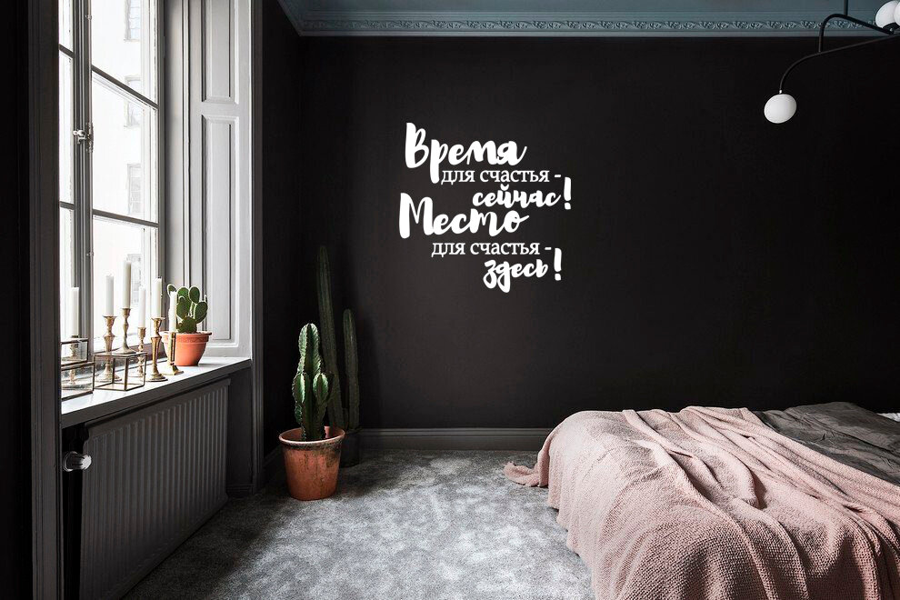 Наклейка на стену большая "Время для счастья - сейчас, место для счастья - здесь!", наклейка интерьерная, стикер на стекло, мебель, стену