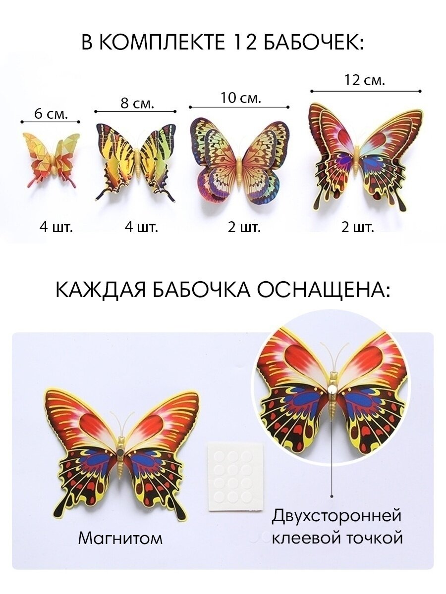 Наклейки интерьерные 3Д бабочки цветные на стену от imaginart