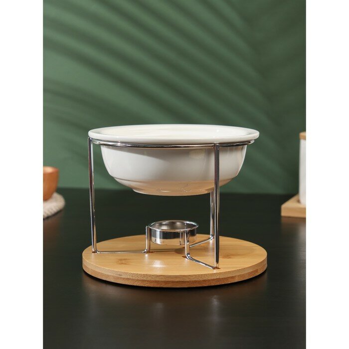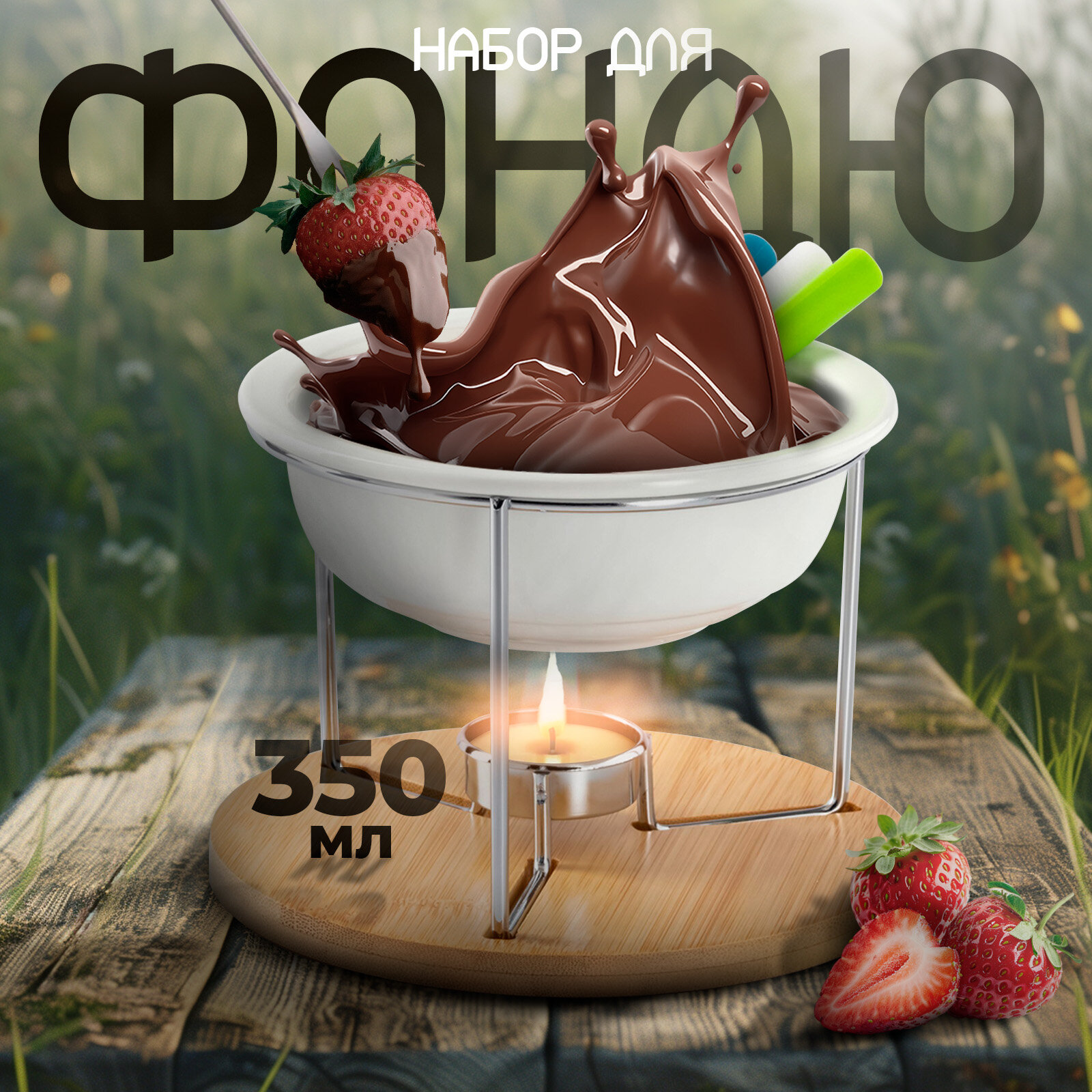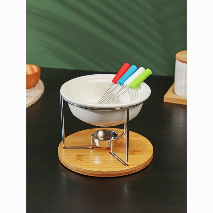 Набор для фондю "Глянец", 6 предметов: чаша 400 мл, подставка, 4 шпажки, керамика, белый