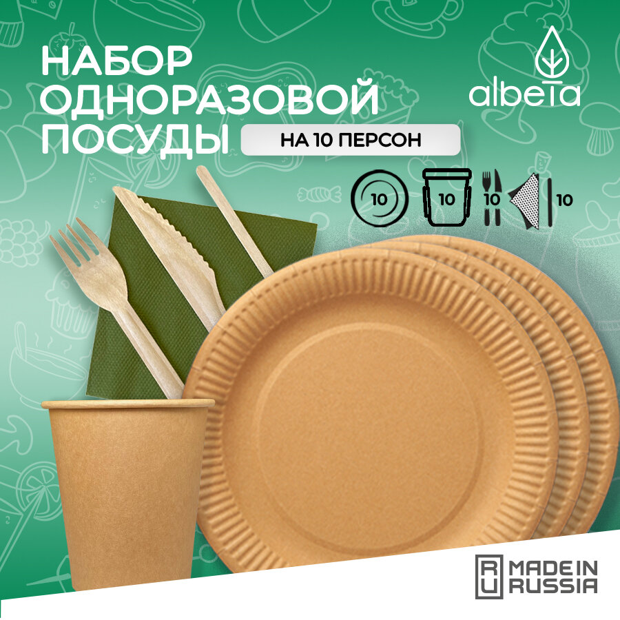 Купить Одноразовая посуда, вилки, ножи, стаканчики, бумажные тарелки, набор одноразовой посуды для пикника и праздника на 10 персон