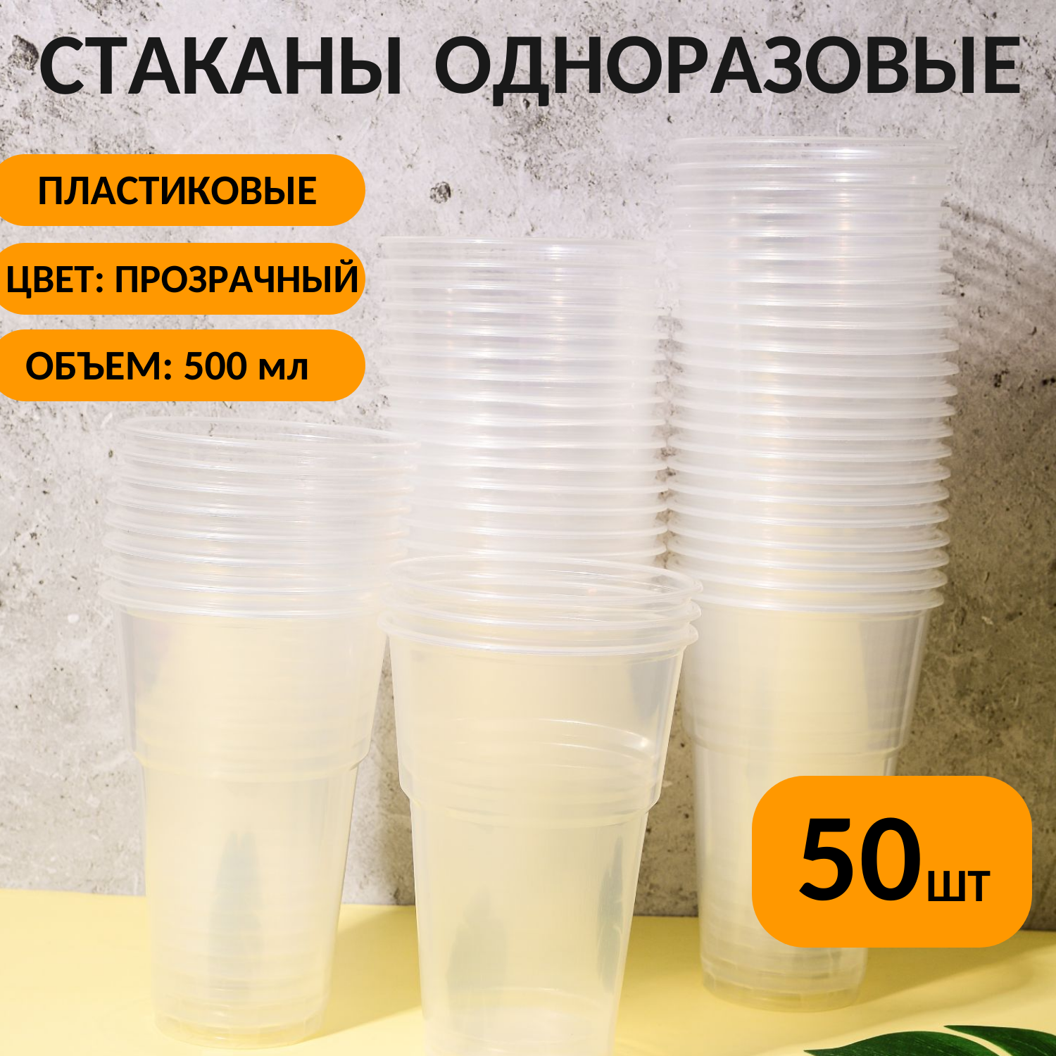 Стаканы одноразовые 500 мл, (50 шт) прозрачные интересное:
