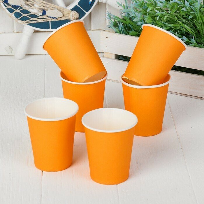 Купить Одноразовые праздничные бумажные стаканы оранжевого цвета 266 мл., 8 шт.