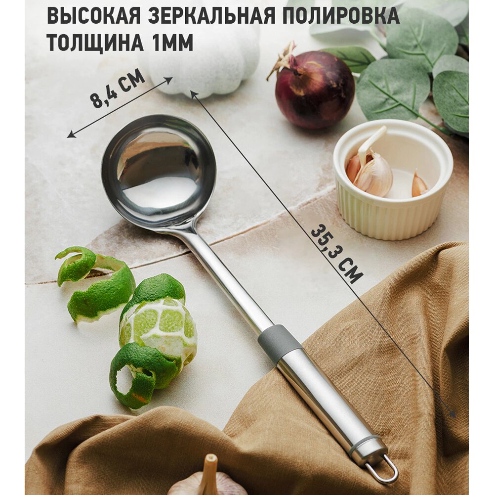 | Дополнительная информация | половник предназначен для перемешивания блюд в процессе варки и подачи готовых блюд |