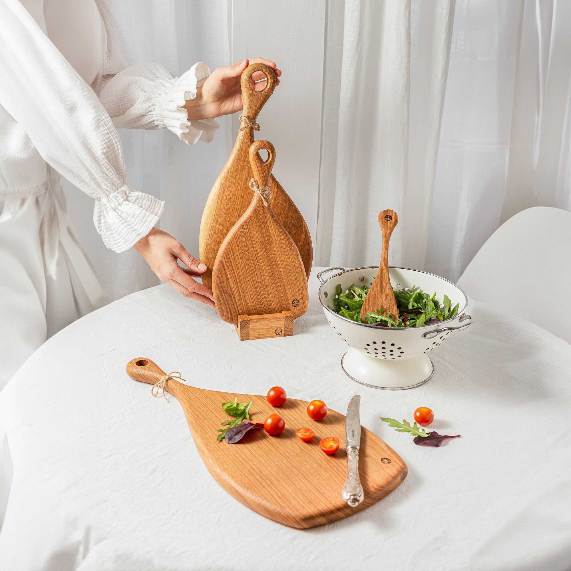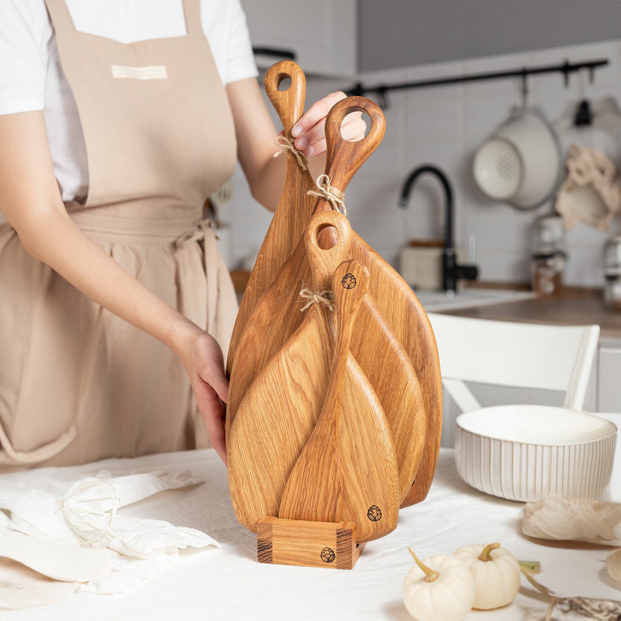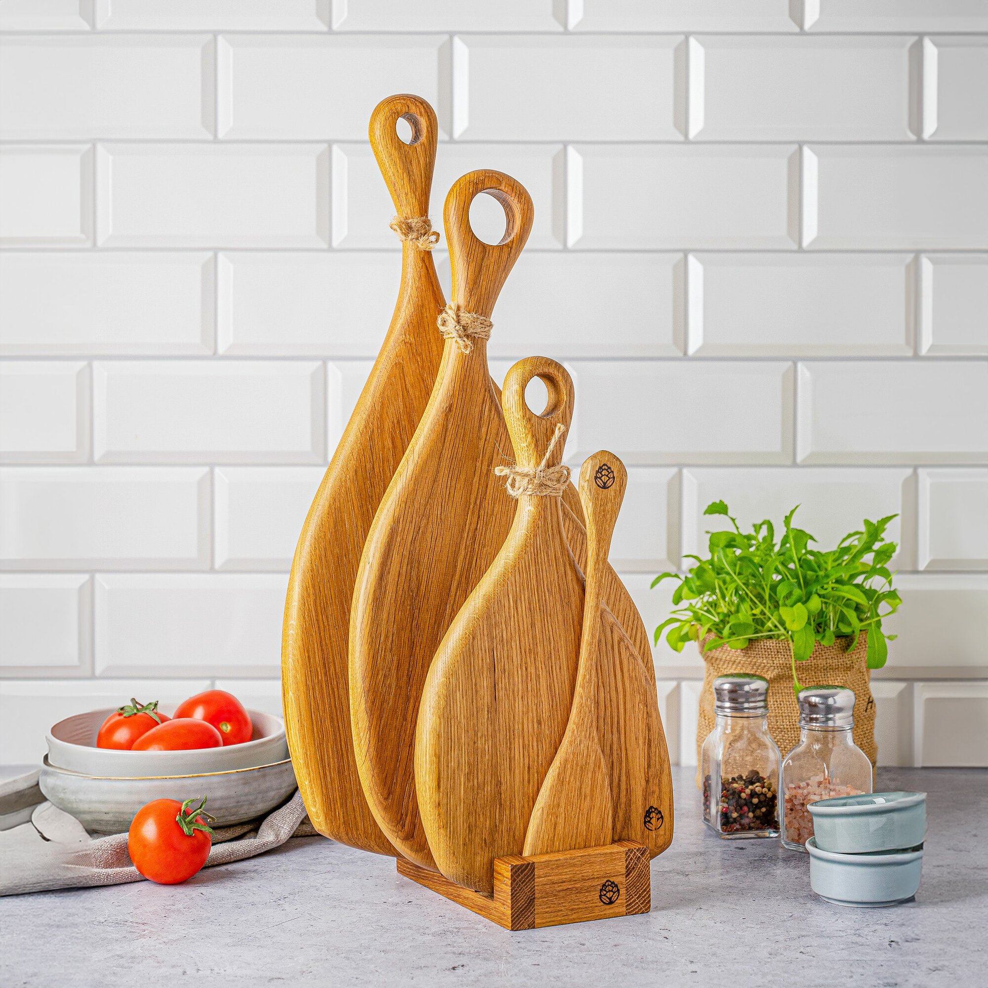 Набор разделочных досок из цельного дуба на подставке. Сервировочные доски. интересное: