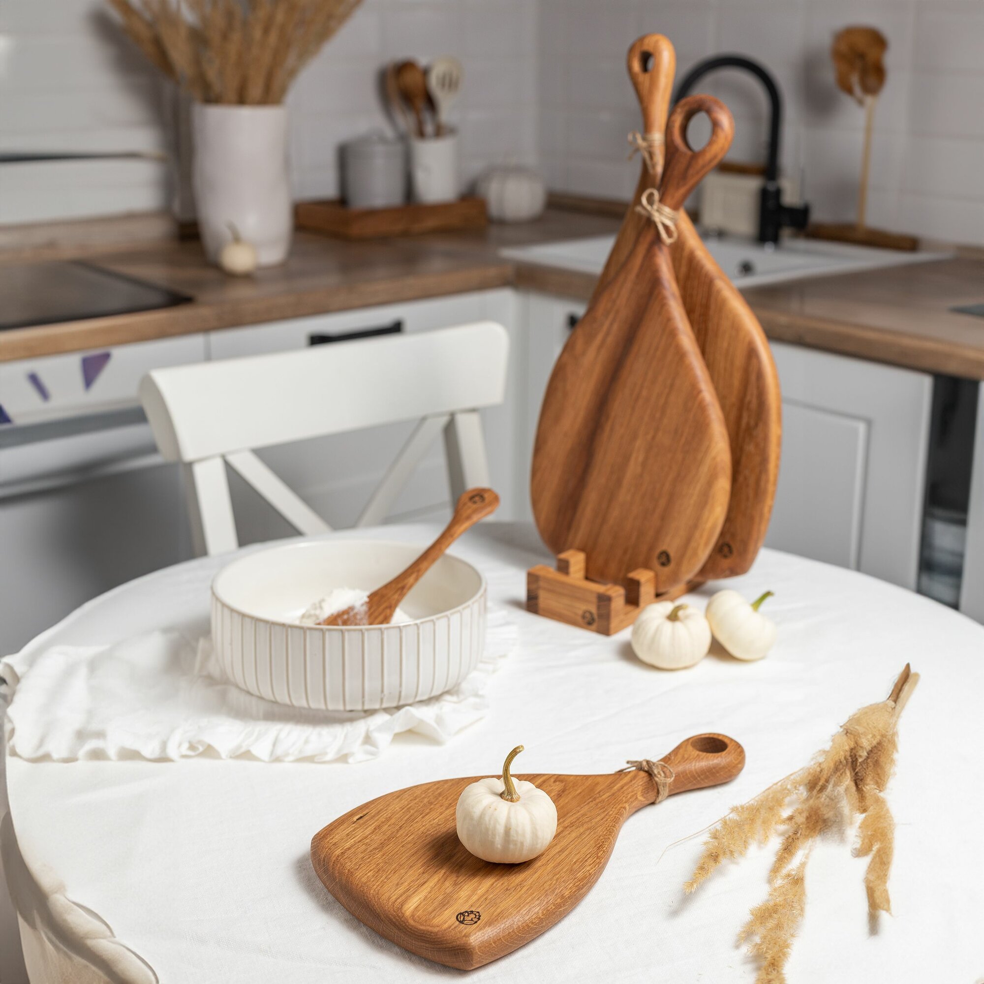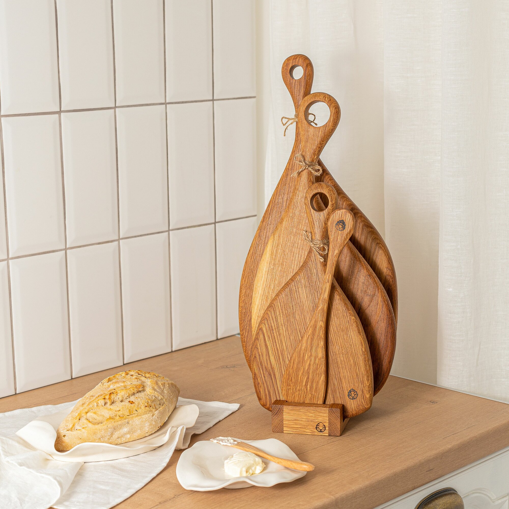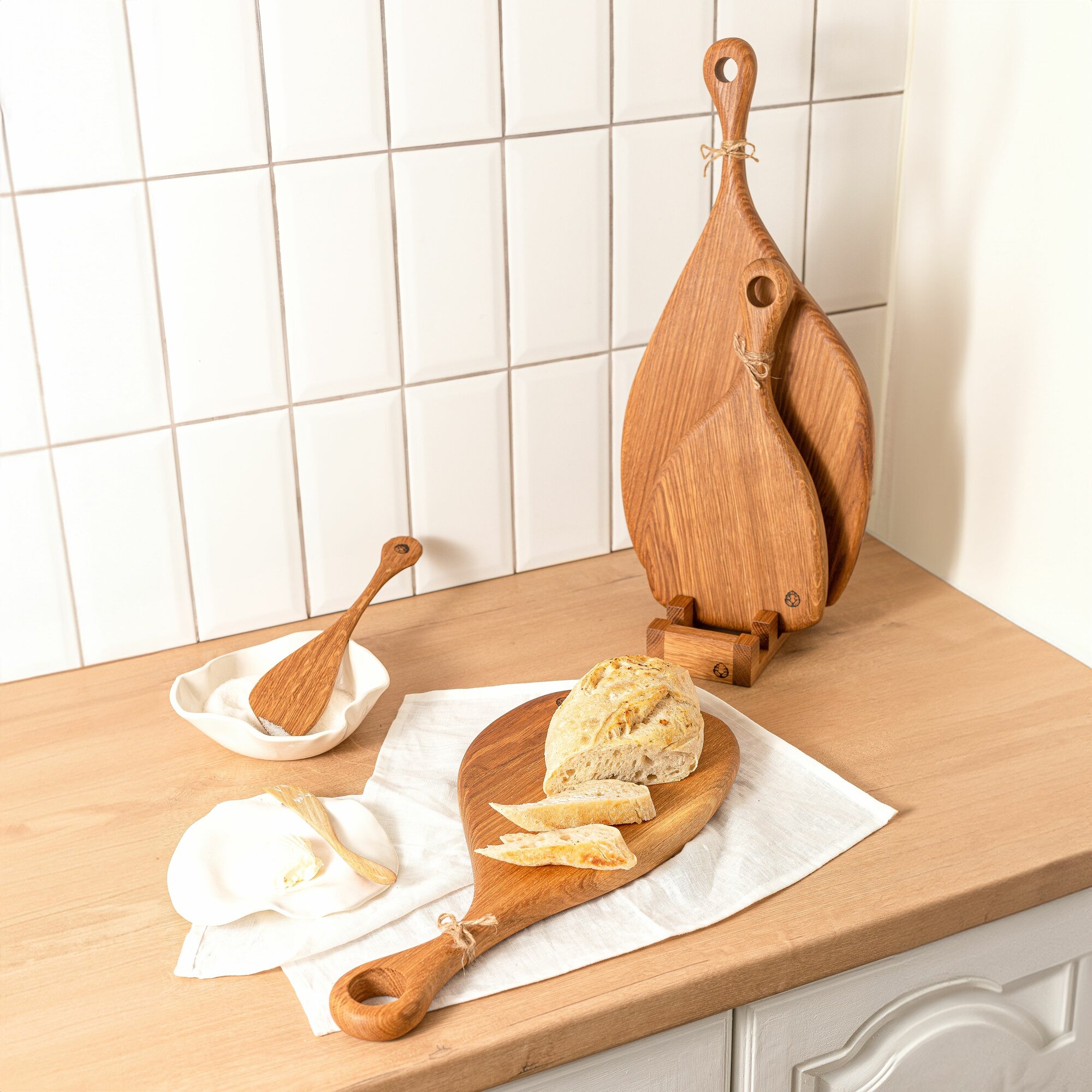 Набор разделочных досок из цельного дуба на подставке. Сервировочные доски. интересное: