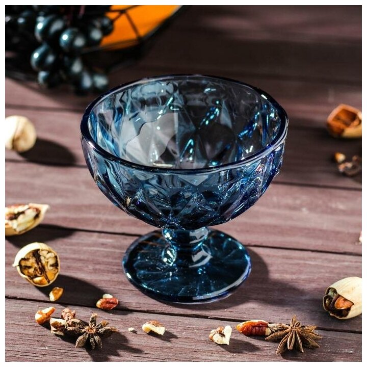 Креманка стеклянная Magistro «Круиз», 350 мл, d=12 см, цвет синий интересное: