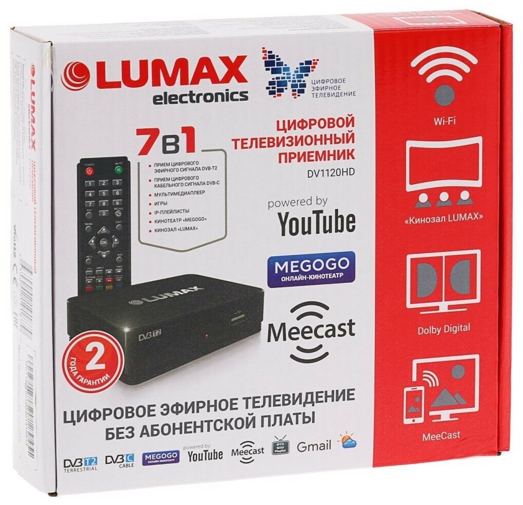 Цифровые ресиверы DVB-T2 Lumax Цифровой ресивер Lumax DV1120HD (Эфирный, DVB-T2, HD, Dolby Digital)
