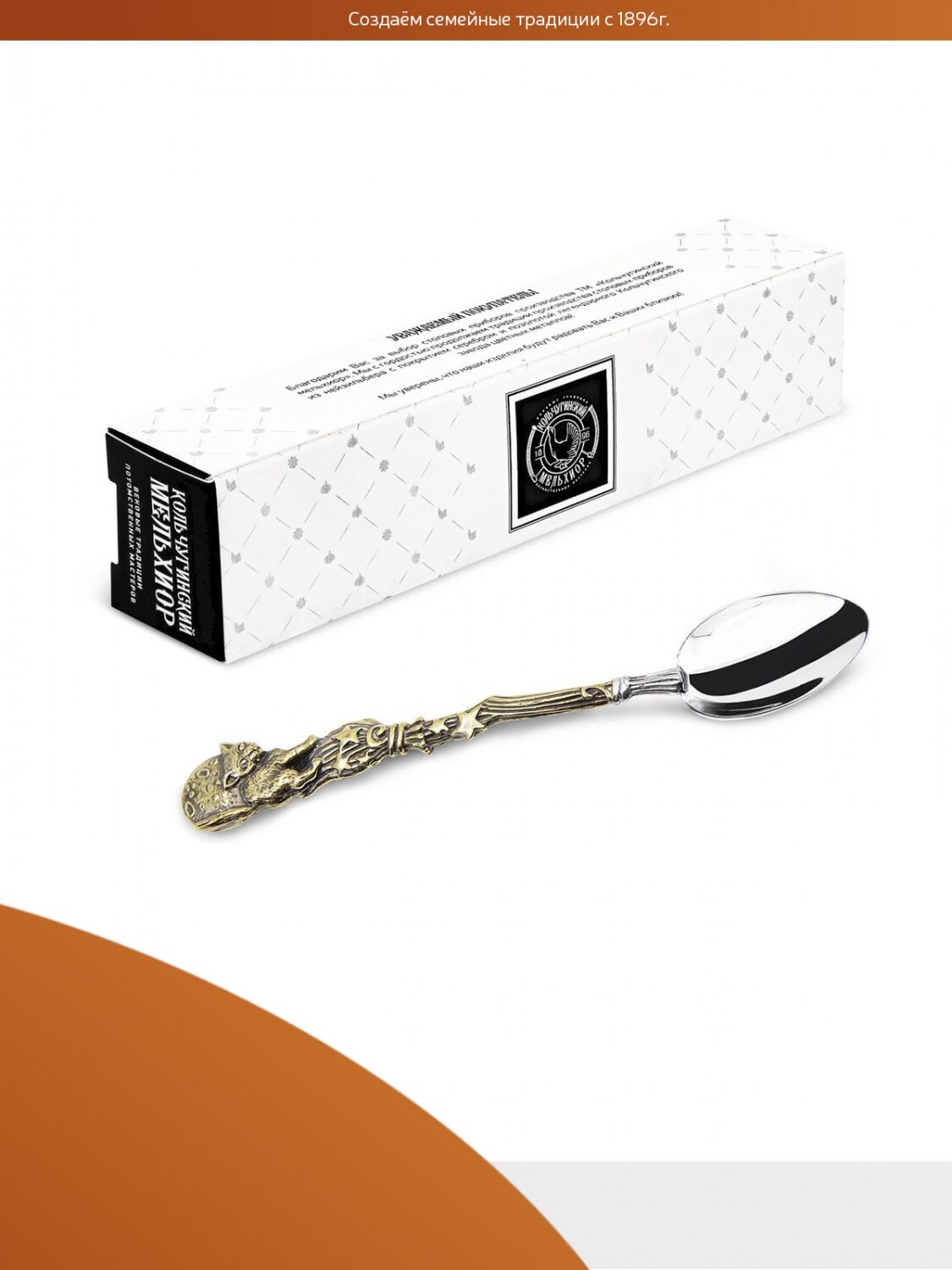 Ложка чайная Волшебный кот латунная с посеребрением интересное: