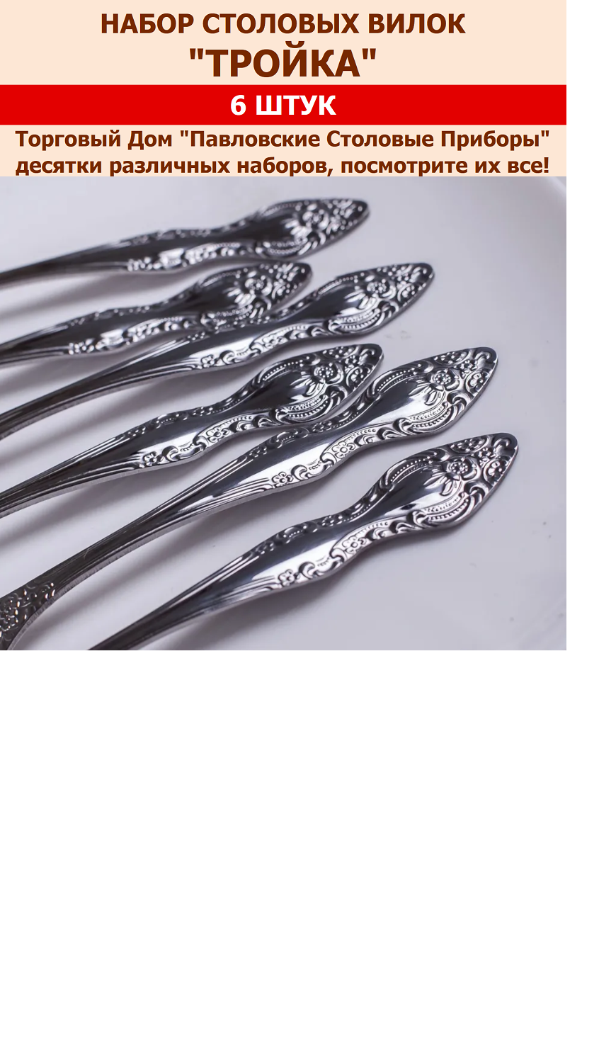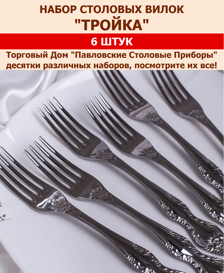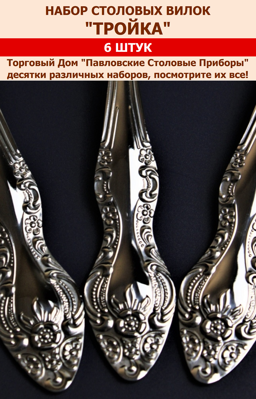 Вилка столовая Тройка, 6 штук, нержавеющая сталь. Павловский завод (Павлово, Россия)