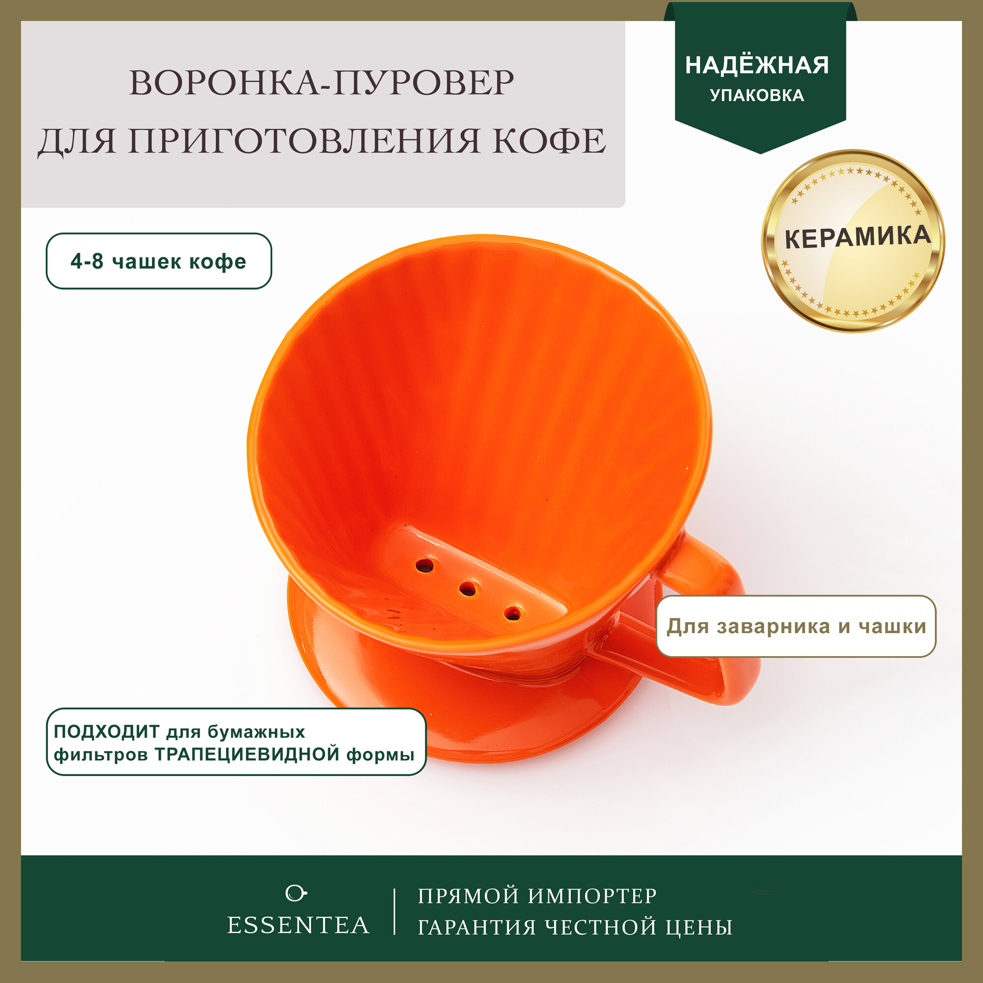 Essentea / Воронка пуровер из керамики оранжевая для приготовления кофе интересное: