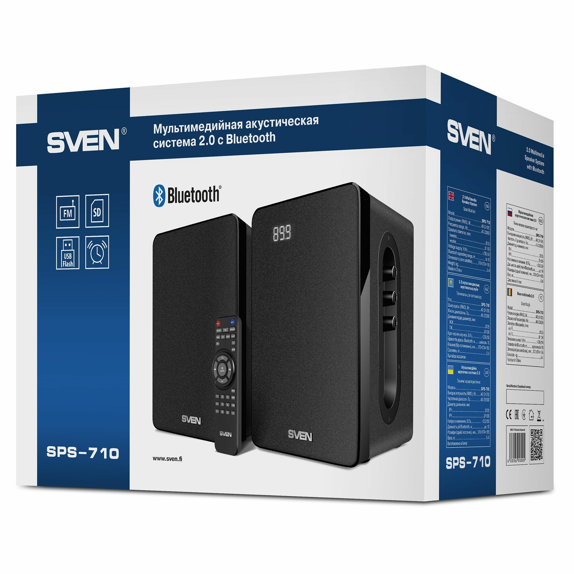 SVEN SPS-710, чёрный, акустическая система 2.0, мощность 2x20Вт (RMS), FM-тюнер, USB/SD, дисплей, пульт ДУ, Bluetooth