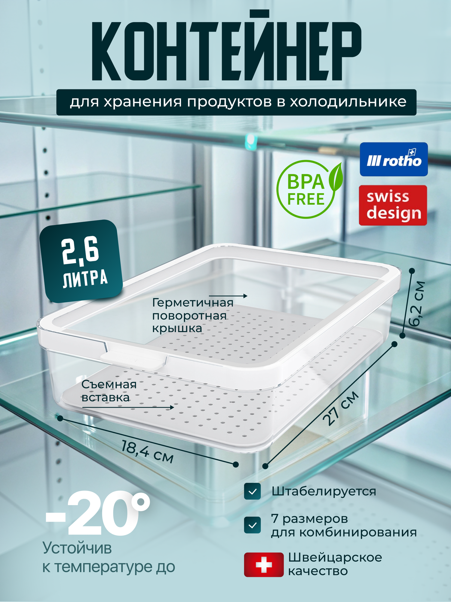 Контейнер Rotho для хранения продуктов, органайзер для холодильника Cauma 2,6 л