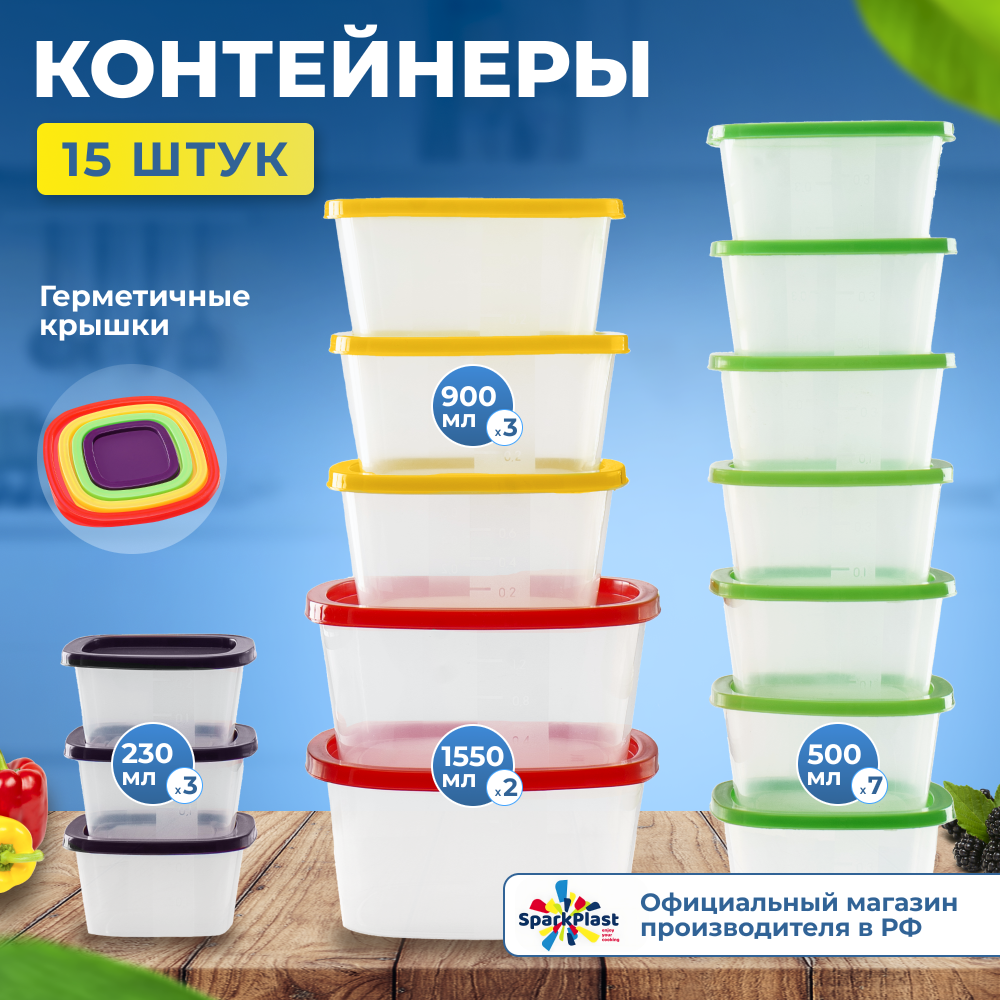 Набор контейнеров для еды 15шт 0,23л-1,55л интересное: