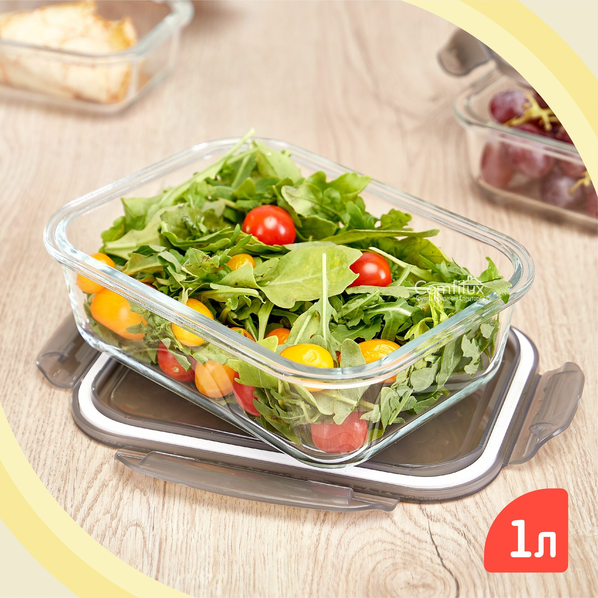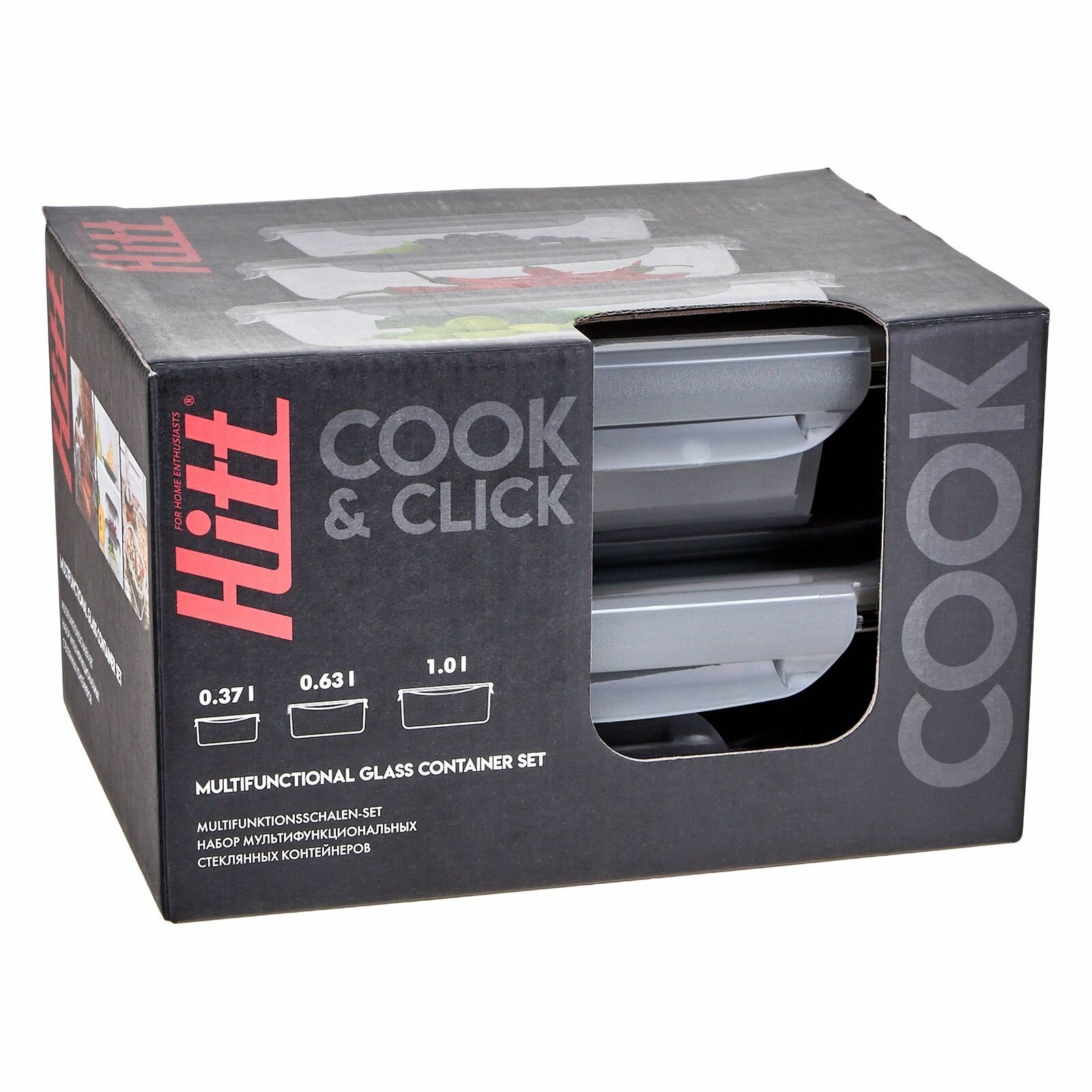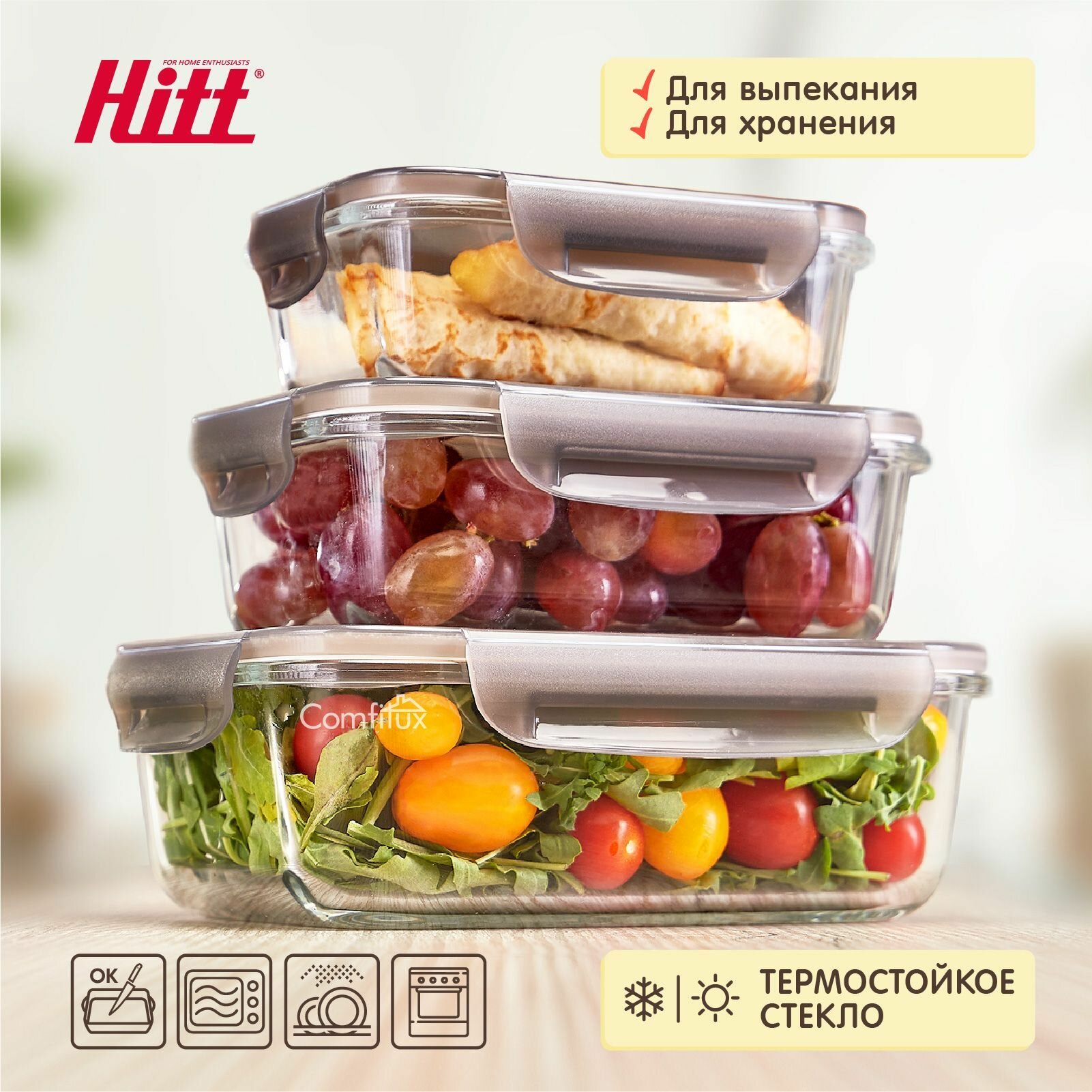 Стеклянные контейнеры для еды 3 штуки Hitt, герметичные, для хранения и запекания продуктов: 0.37 л, 0.63 л, 1 л интересное: