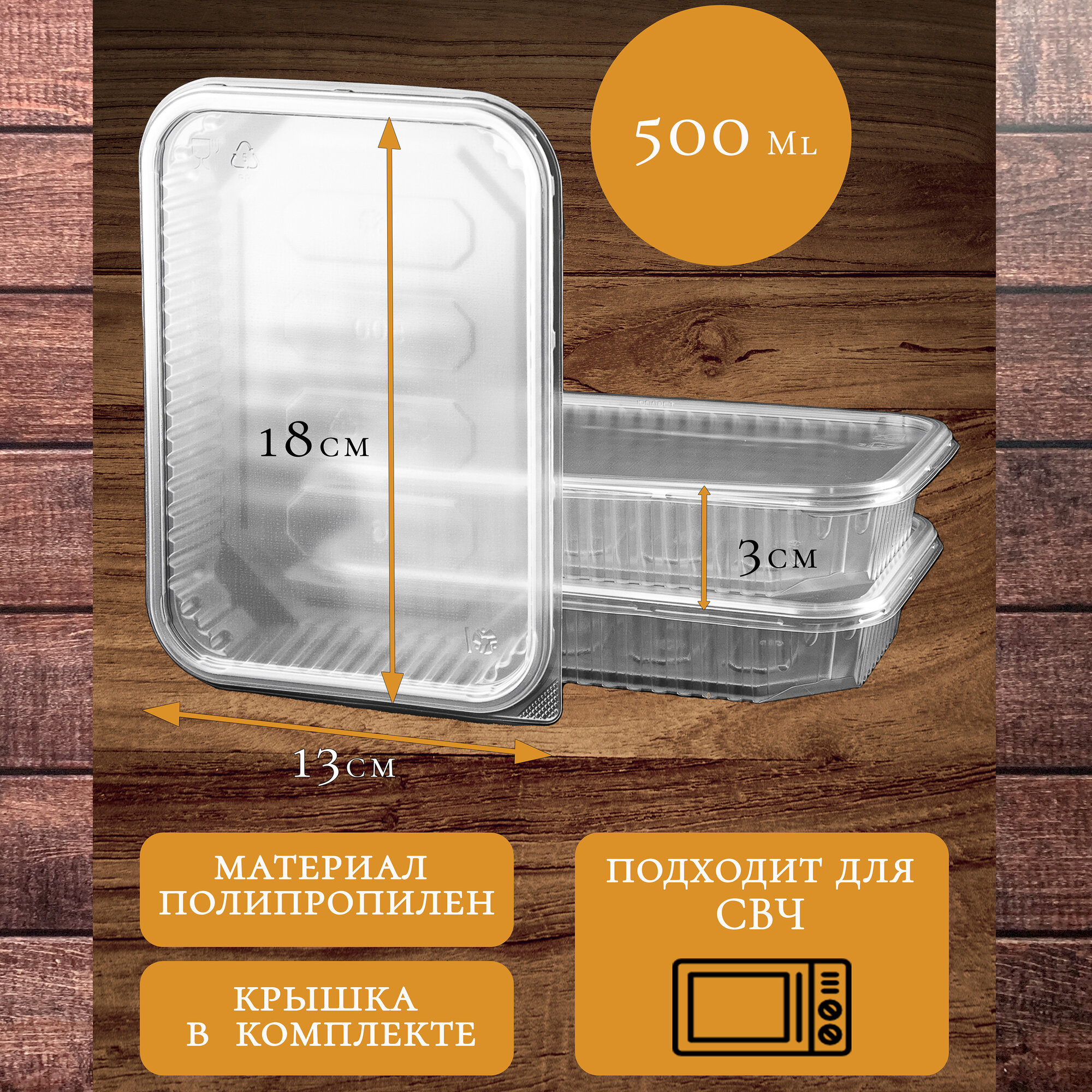 Контейнеры пластиковые для еды с крышкой, одноразовые, 500 мл 100 шт. 186 серия интересное:
