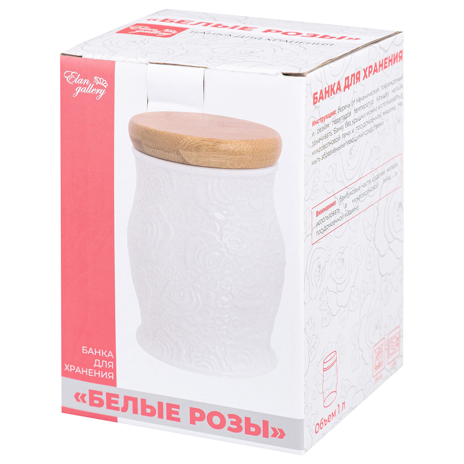 Банка Фарфор Д/сып Продуктов Белые Розы С ДЕР Крышкой 1Л Белая (48) Элан 860038 .
