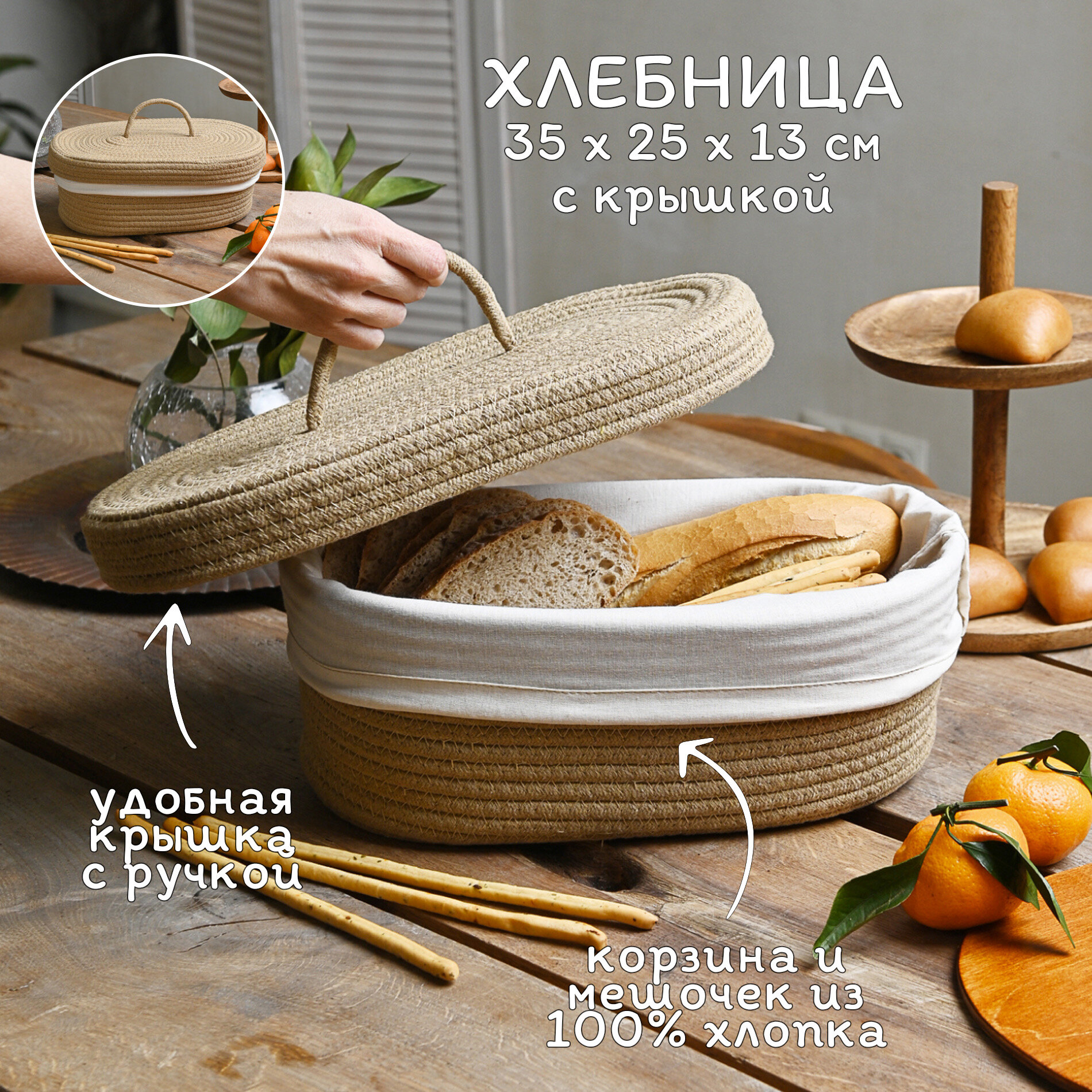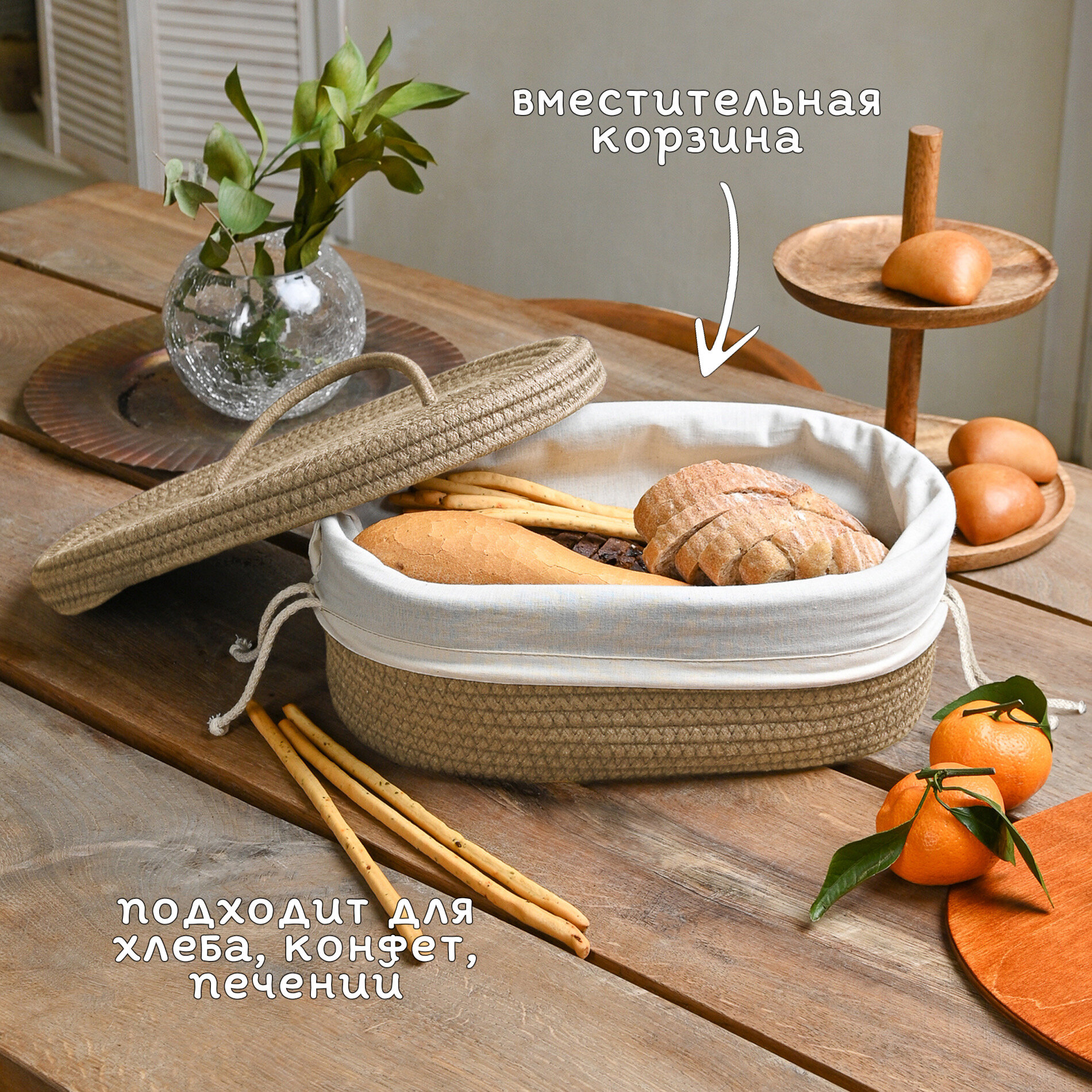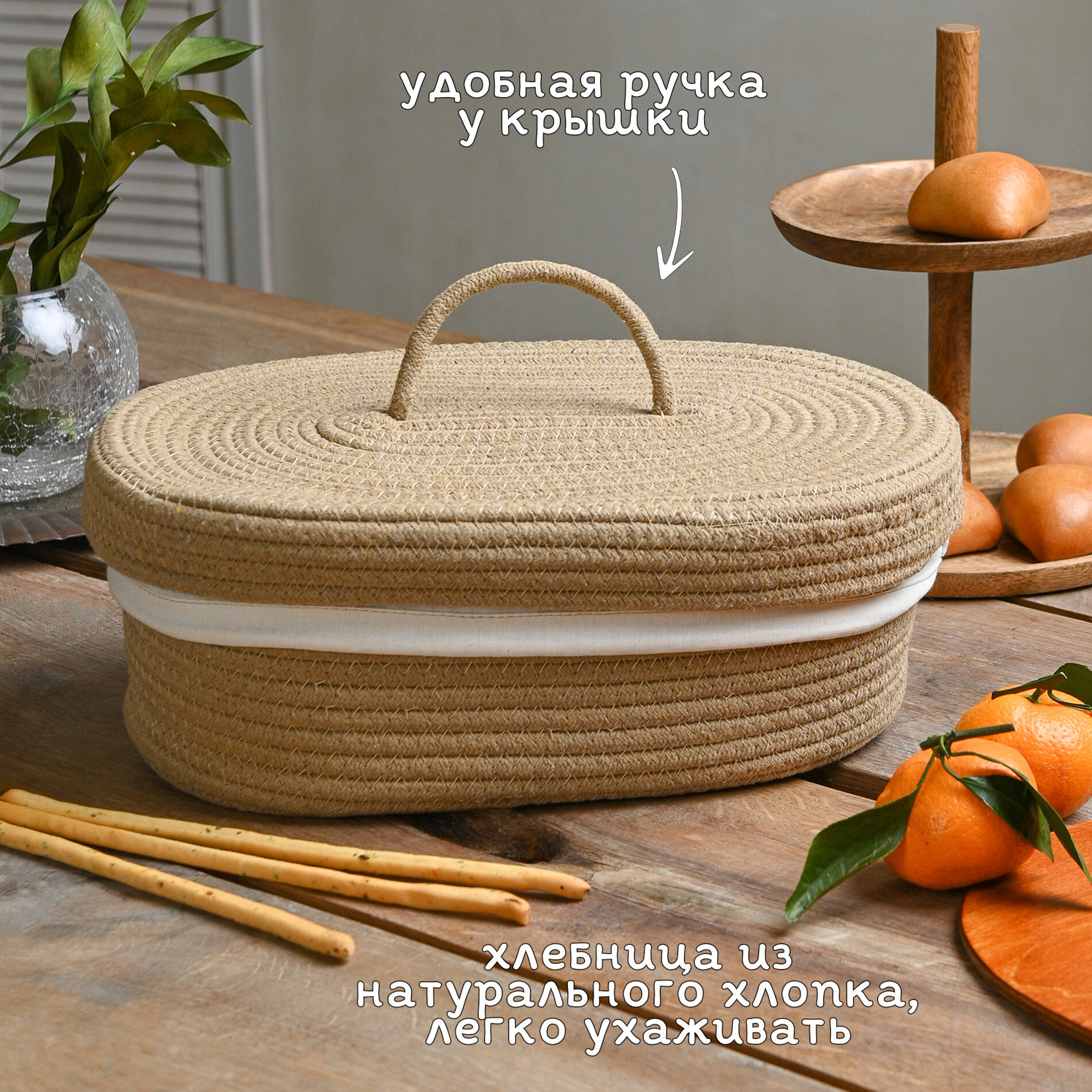 Хлебница плетеная с крышкой на стол B.Baker бежевая интересное: