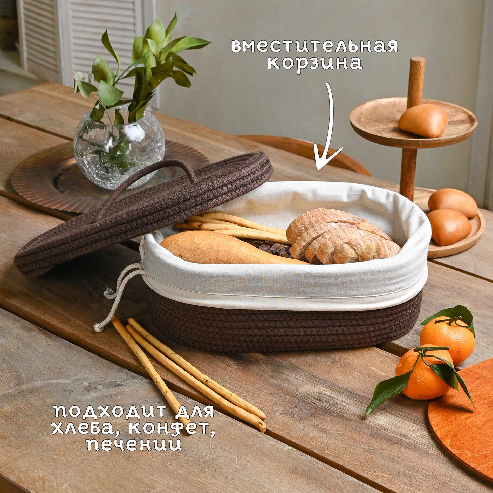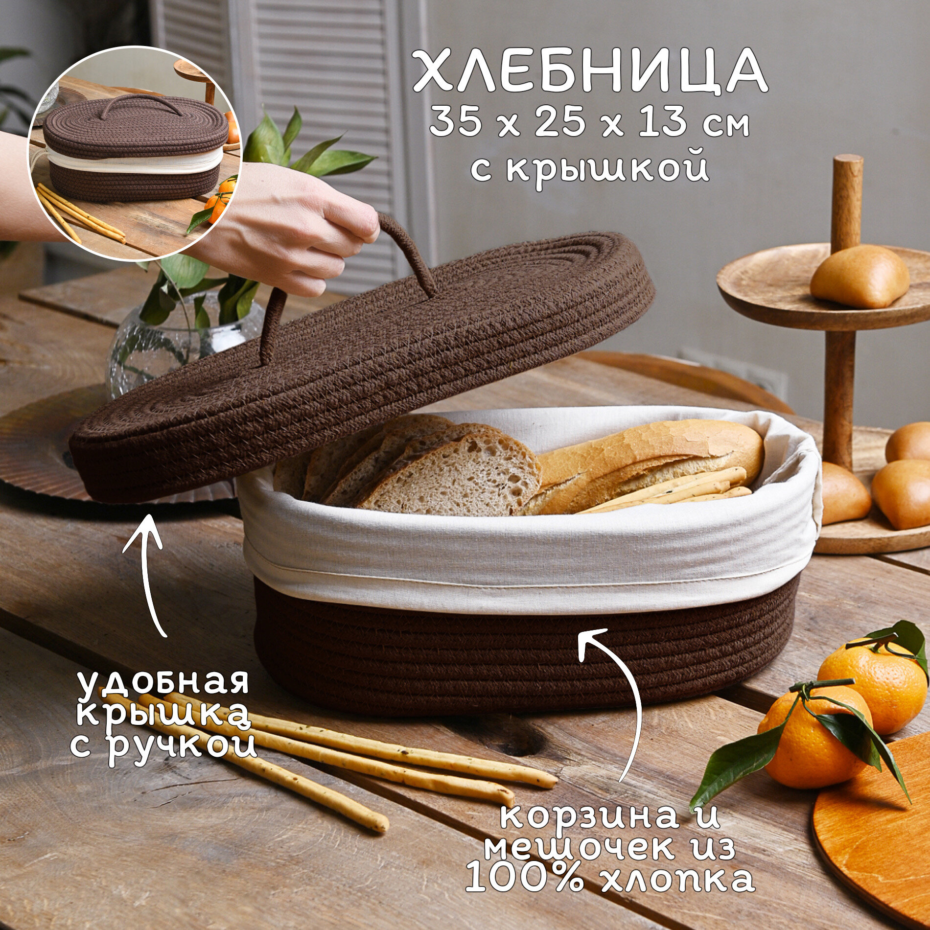 Хлебница плетеная с крышкой на стол B.Baker (коричневая) интересное:
