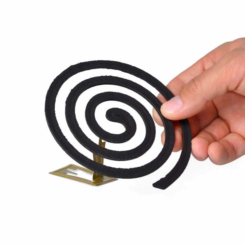 | Способ применения | начиная от центра, осторожно разделить спирали. Спираль установить на прилагаемую металлическую подставку, при этом острие подставки предварительно отогнуть и вставить в прорезь на спирали. Конец спирали поджечь, пламя задуть. По окончании обработки спираль затушить и сохранять для дальнейшего использования. Время полного сгорания спирали 7-8 часов. Повторные обработки проводят при появлении комаров. |