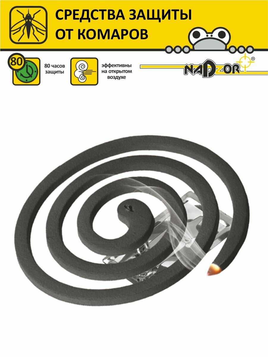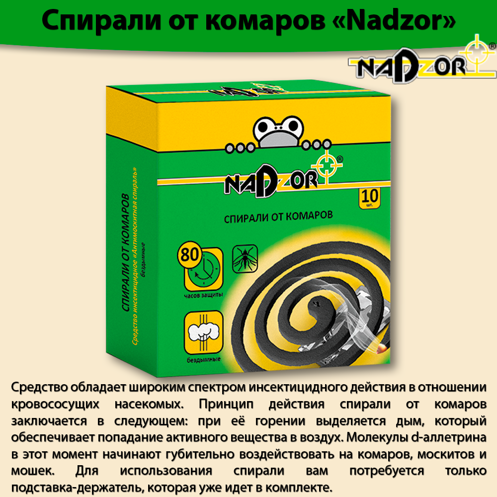 Спирали от комаров малодымные без запаха, 10 штук, черные, Nadzor интересное: