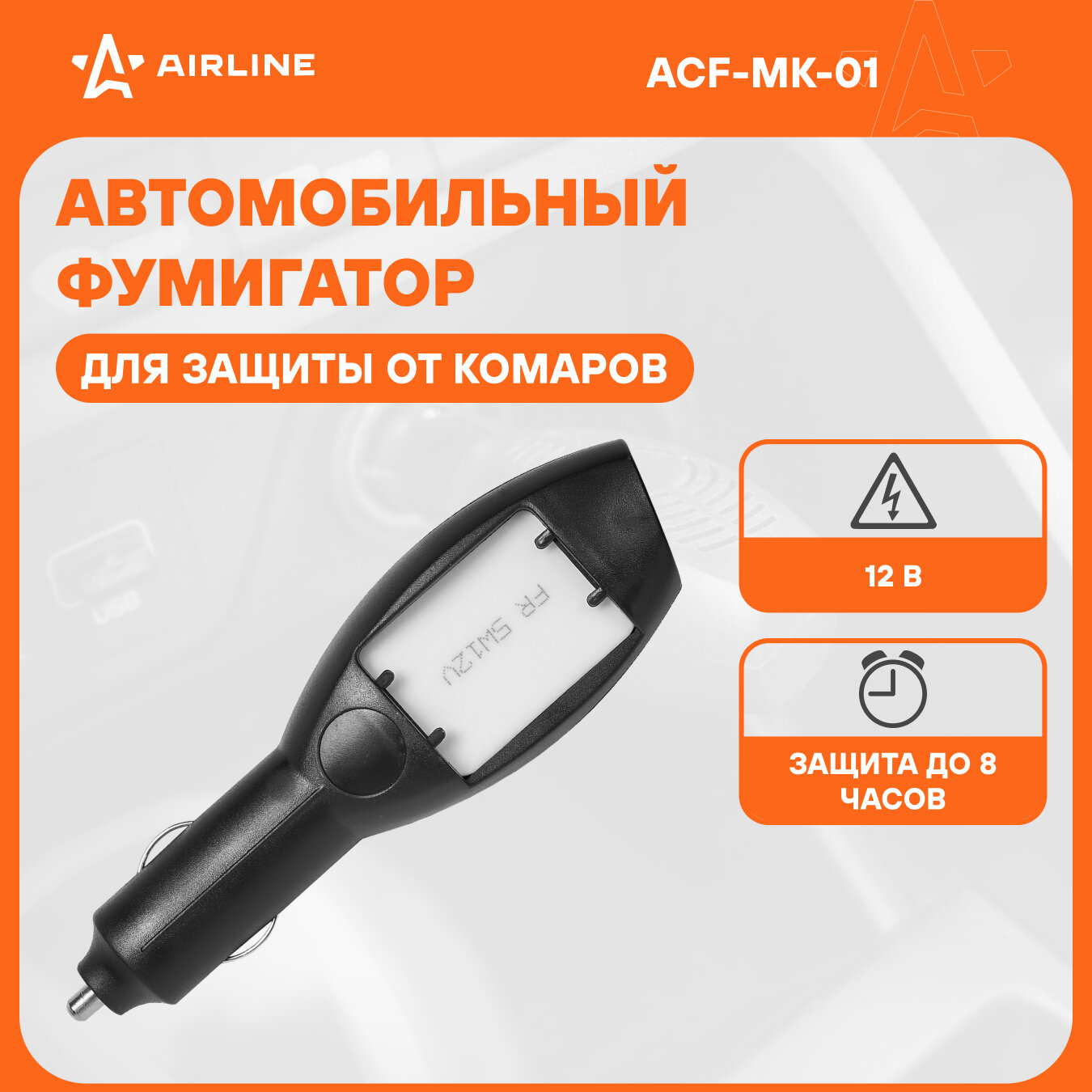 Купить Фумигатор для защиты от комаров, автомобильный 12V/5W, табл., черный ACF-MK-01 AIRLINE