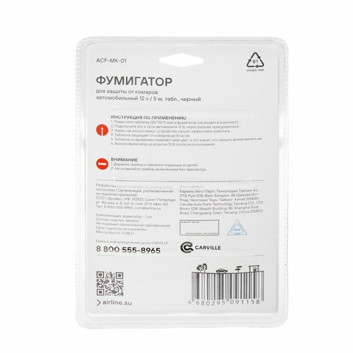 AIRLINE ACF-MK-01 Фумигатор для защиты от комаров интересное: