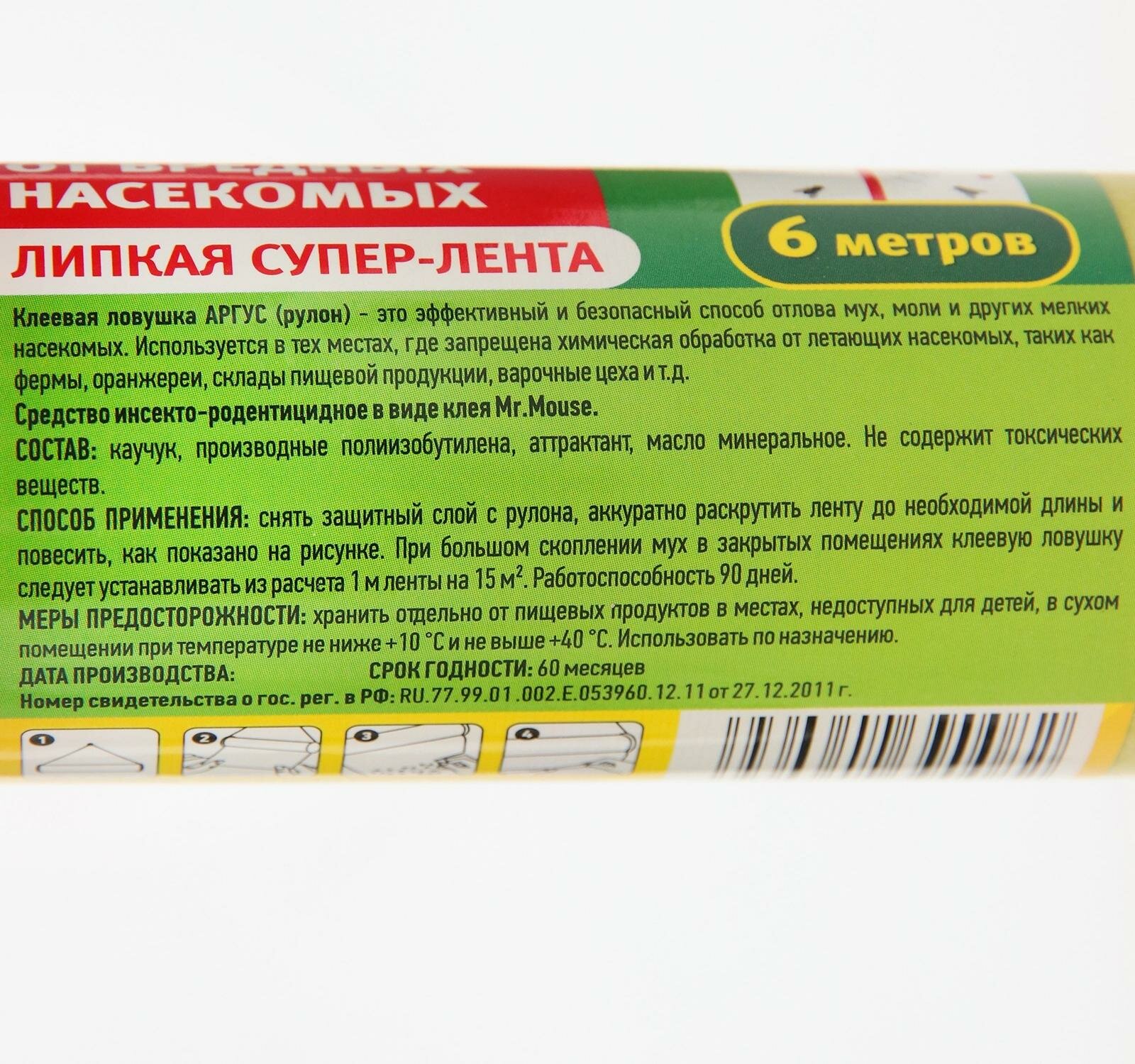 | Дополнительная информация | клеевая ловушка ARGUS (рулон 6 метров на 10 сантиметров), желтый цвет ловушки отражает свет на длине волны, которая привлекает насекомых, в клеевом составе ловушки НЕ используются ЯДЫ она абсолютно безопасна для человека и домашних животных |