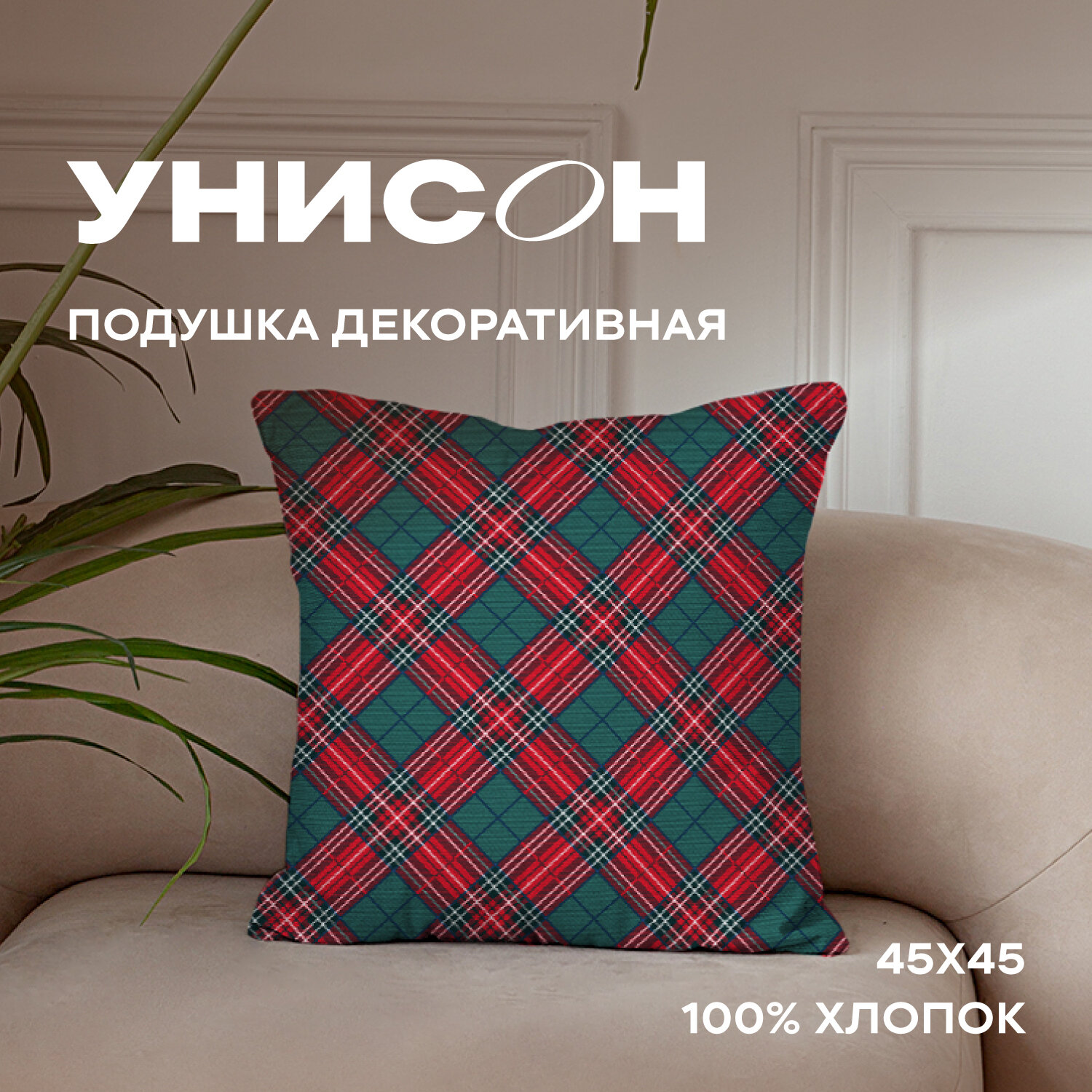 Подушка декоративная рогожка "Унисон" 45х45 рис 33159-4 Fern