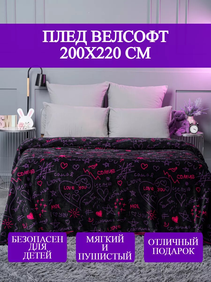 Плед 200х220 см на кровать для спальни, Любимка интересное: