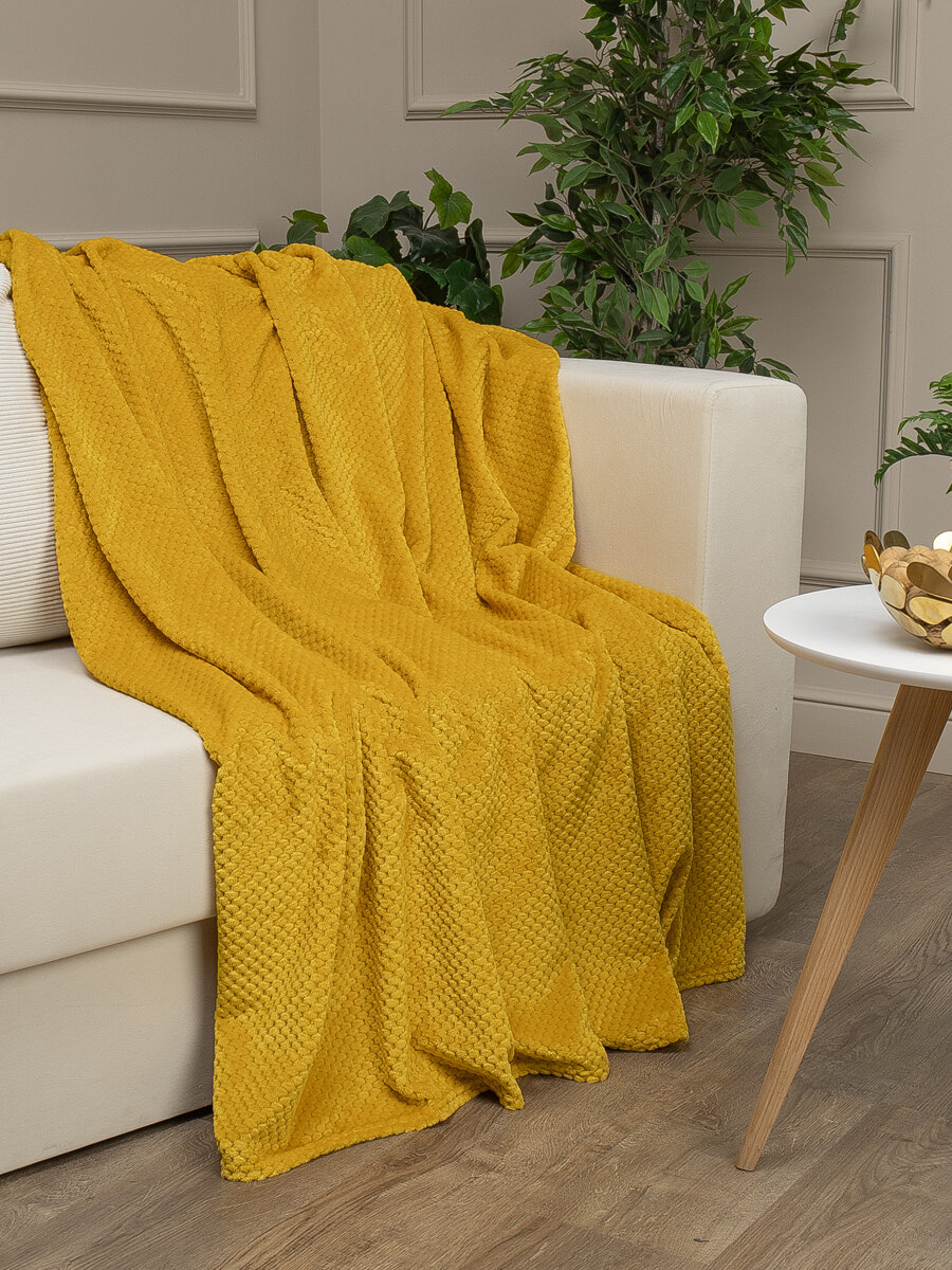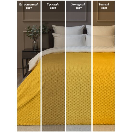 Купить Плед TexRepublic Deco 200х220 см евро, покрывало велсофт, однотонный желтый, мягкий, плюшевый