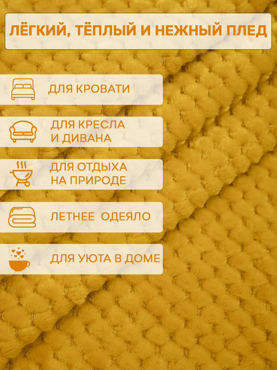 СохранитьПлед TexRepublic Deco 200х220 см евро, покрывало велсофт, однотонный желтый, мягкий, плюшевый интересное: