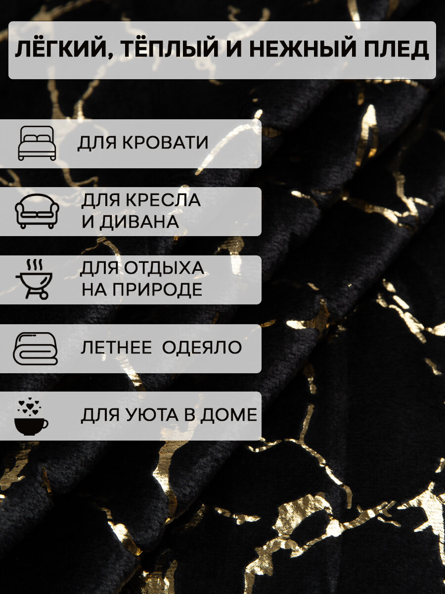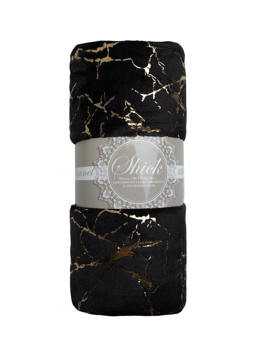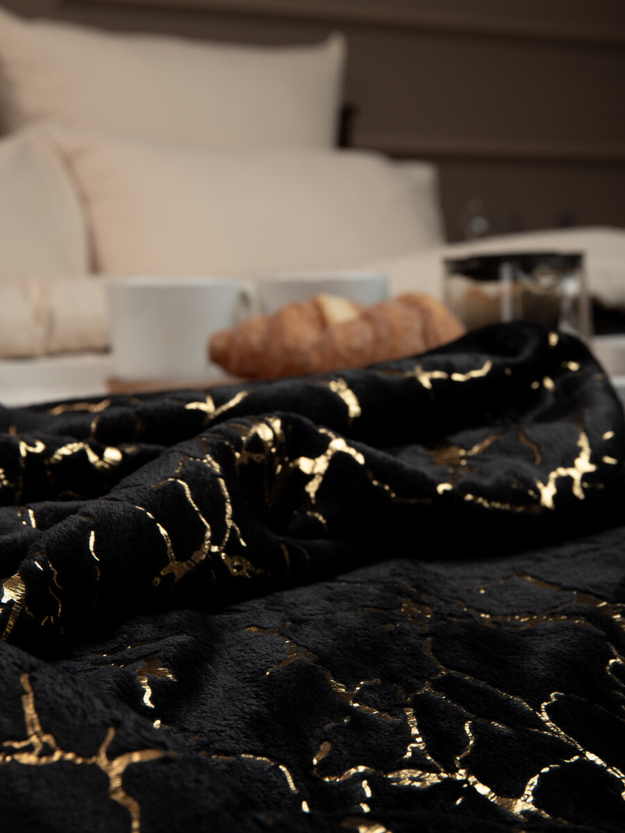 Купить Плед TexRepublic Shick 200х220 см Евро, покрывало велсофт, черный, мягкий, плюшевый с рисунком мрамор